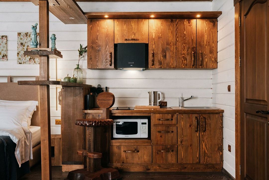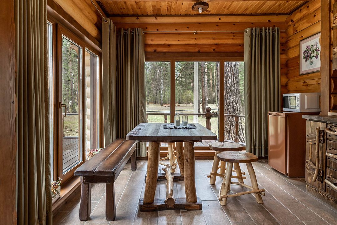 На территории отеля созданы все условия для комфортного отдыха. Гостям предлагаются уютные бревенчатые дома, которые идеально подходят для проживания вдали от цивилизации. Каждый дом оборудован террасой, где можно насладиться свежим воздухом, а также мангальной зоной для вечеров у костра. В кафе «Кегворт» Вы сможете начать свой день с вкусного таежного завтрака, который включен в стоимость проживания. Парк-отель предлагает две просторные бани с купелями, что позволит Вам полностью расслабиться после активного дня.