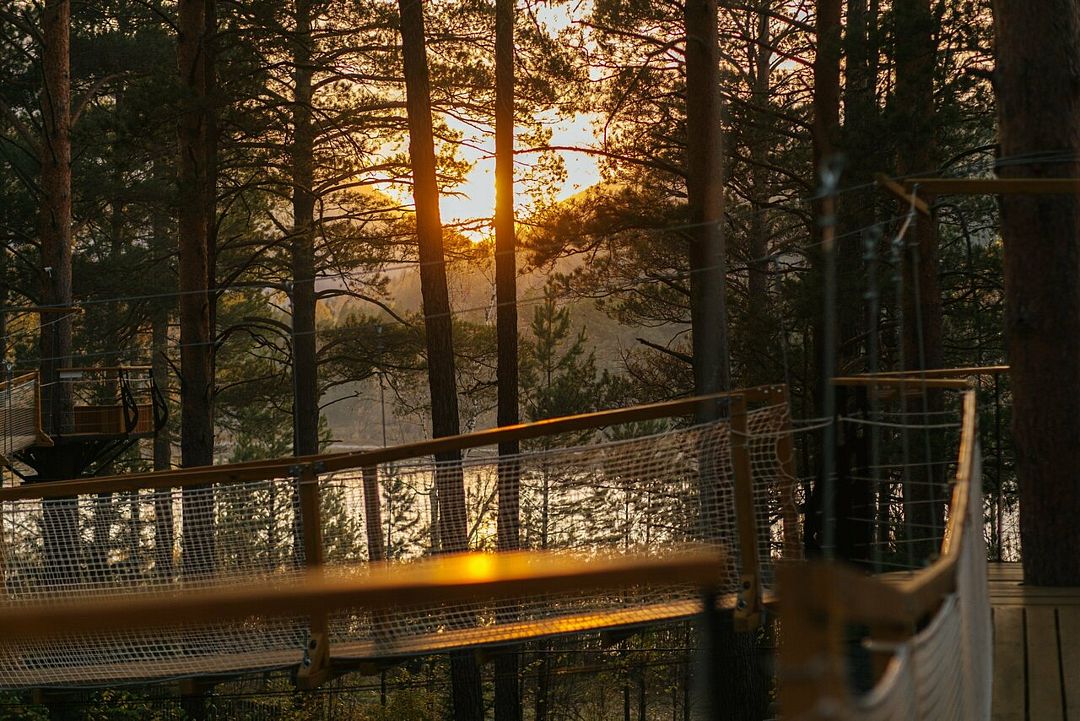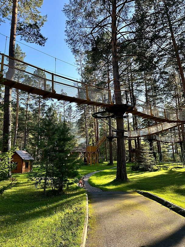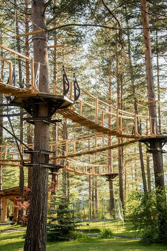 Веревочный парк «Воздушно-подвесная тропа» расположился высоко над землёй, предлагая гостям захватывающие маршруты, полные удивительных испытаний. Пройдя по подвесным мостам, посетители смогут насладиться великолепными видами гор и живописными пейзажами, ощущая невероятное чувство свободы.