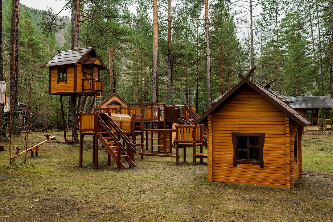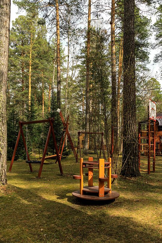 На территории расположена просторная детская площадка, где маленькие гости могут наслаждаться активными играми с друзьями. Здесь их ждут горки, увлекательные лазалки, уютные песочницы и качели, которые подарят множество радостных моментов.