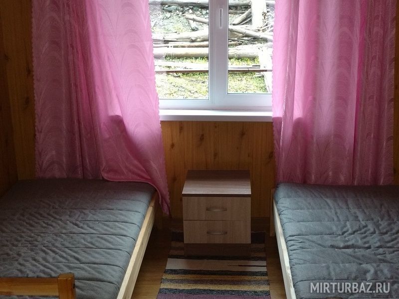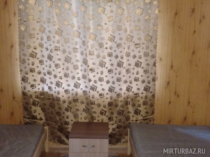 Открытая веранда. В номере две 1,5 спальные кровати, 2 тумбочки, зеркало, 2 вешалки с полочками.