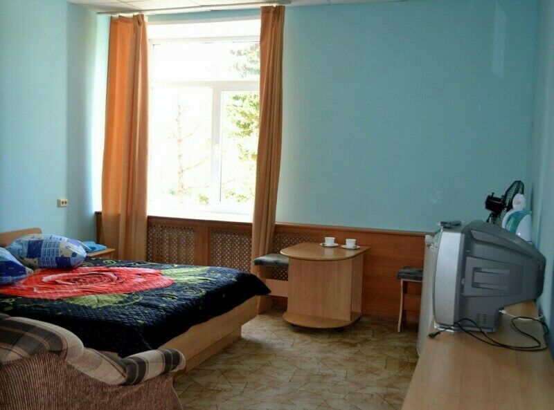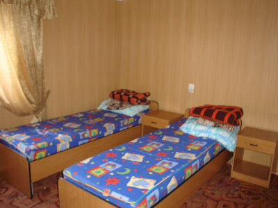 1 комната S= 25 кв.м., шкаф-купе для одежды, 3-4 кровати, столик, 4 стула, цветной ТВ, холодильник, электрочайник,удобства на этаже.