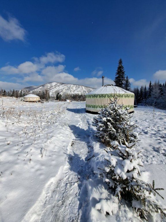 В юрте расположена 2сп кровать и 2сп диван. Для тепла и уюта: дровяная печь, теплый электрический пол и на кроватях простыни с электроподогревом. Обустроена небольшая кухонная зона со всей необходимой посудой, чайником, плиткой, умывальником с подогревом.