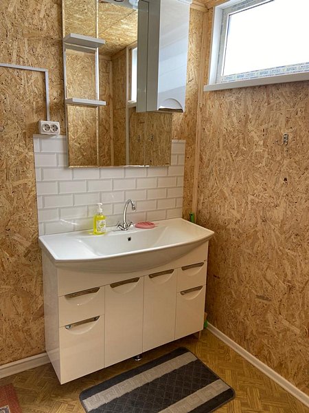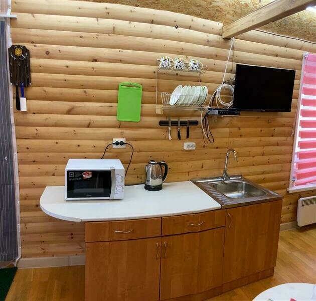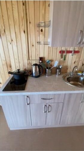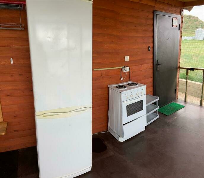 Домик с подселением. Отдельный вход, отдельная кухня и отдельный санузел. На кухне есть холодильник, электроплитка и электрочайник. В санузле унитаз и раковина с обеспечением водоснабжения.