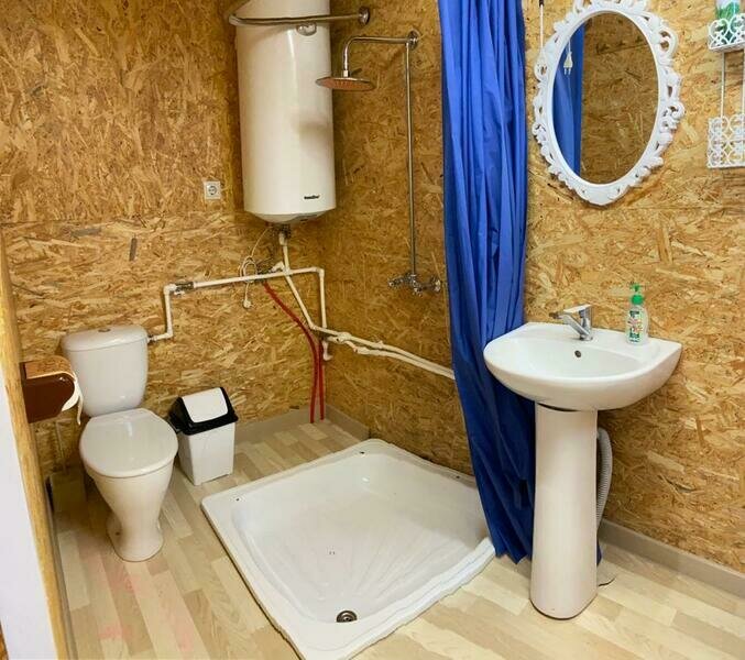 Все удобства в доме: душевая зона совмещённая с санузлом и зона для приготовления пищи.