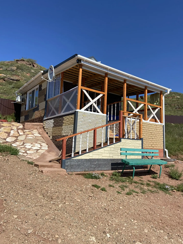 Отдельный четырехместный домик с высоким крыльцом