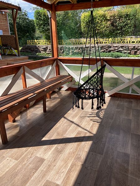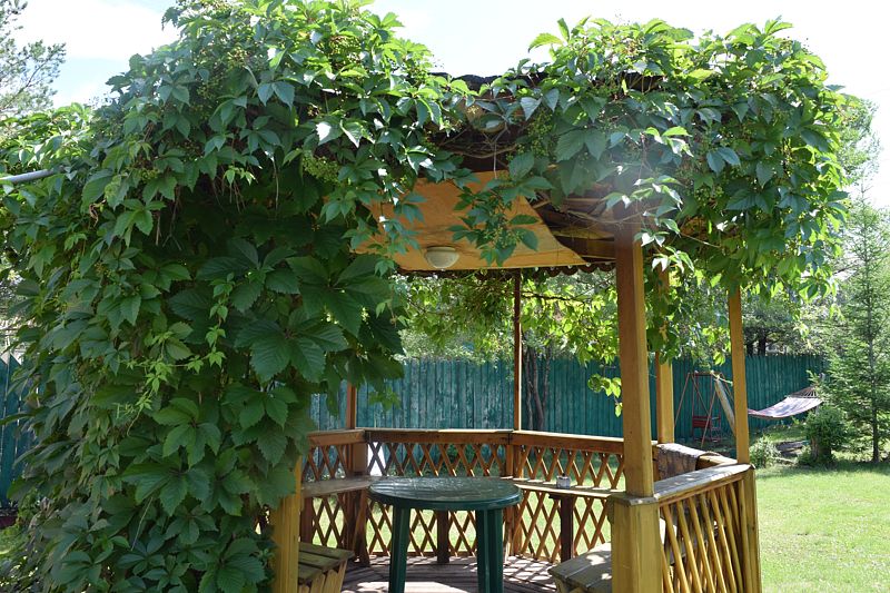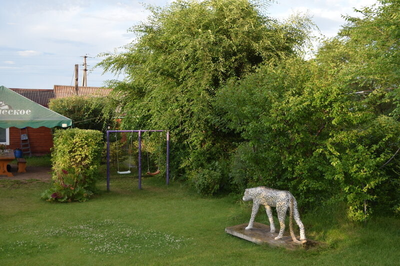 На территории расположено несколько беседок, гамак, качели и мангал.