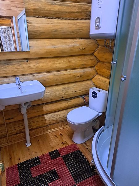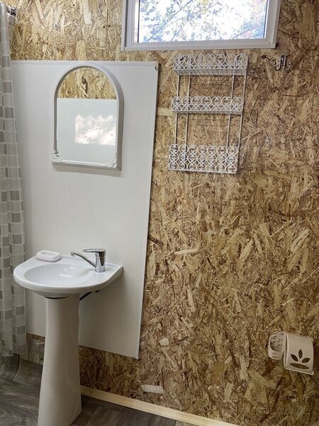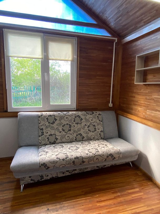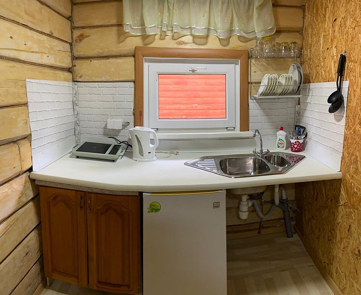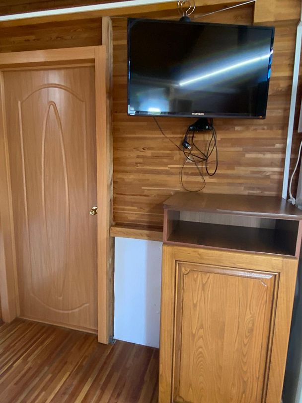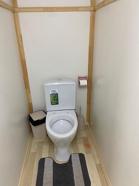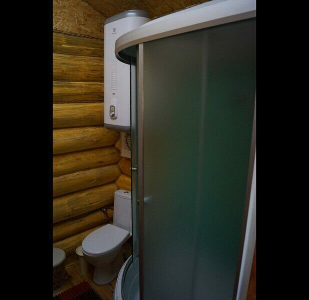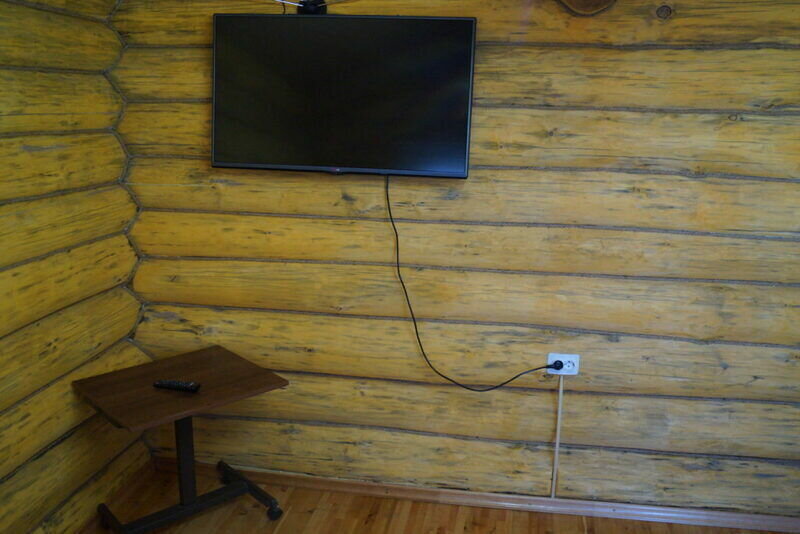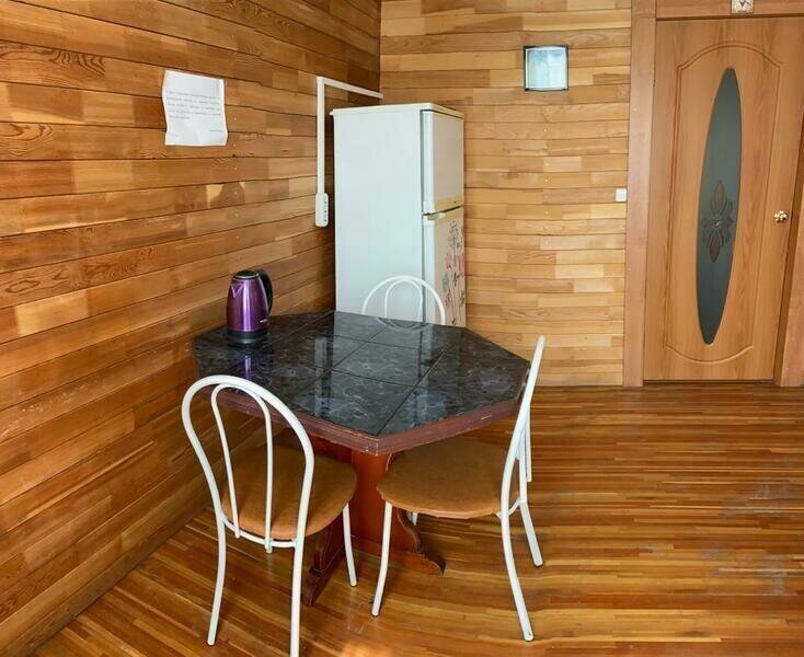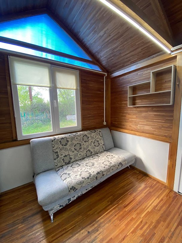 В домике есть своя крытая терраса, кухня, большой телевизор, холодильник, кондиционер. Запах свежего дерева, домашний уют, удобное расположение на территории. Санузел внутри дома.