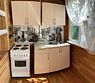Кухня: кухонный гарнитур, горячая вода, холодильник, электроплита, чайник, стол, стулья, набор посуды.