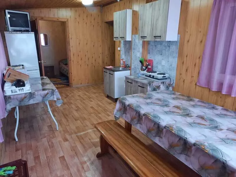 1 этаж: Комната 1( 3 места) Диван+ кровать, своя кухня.
