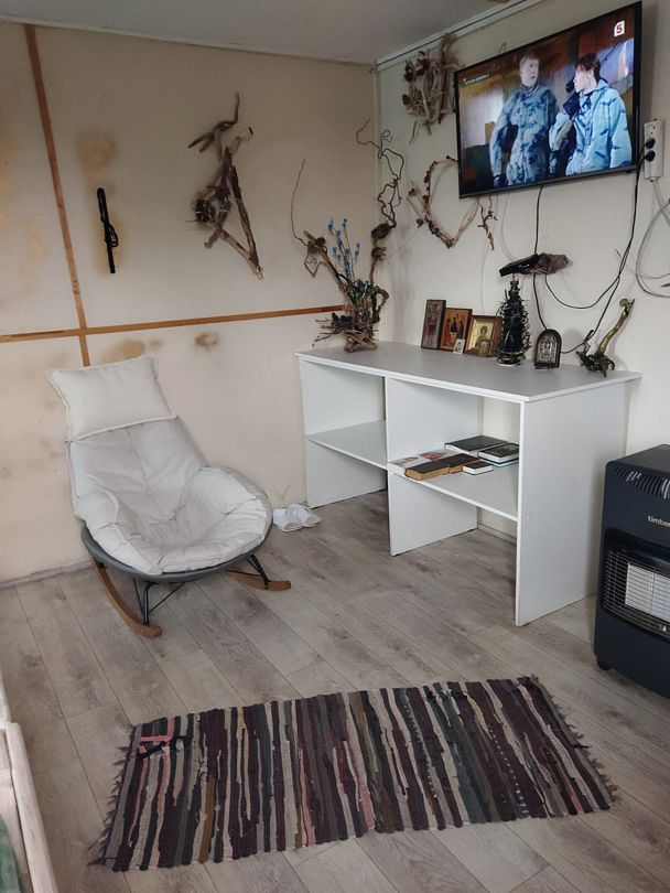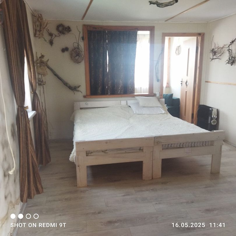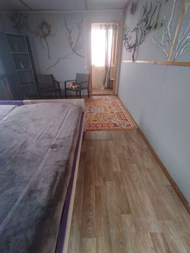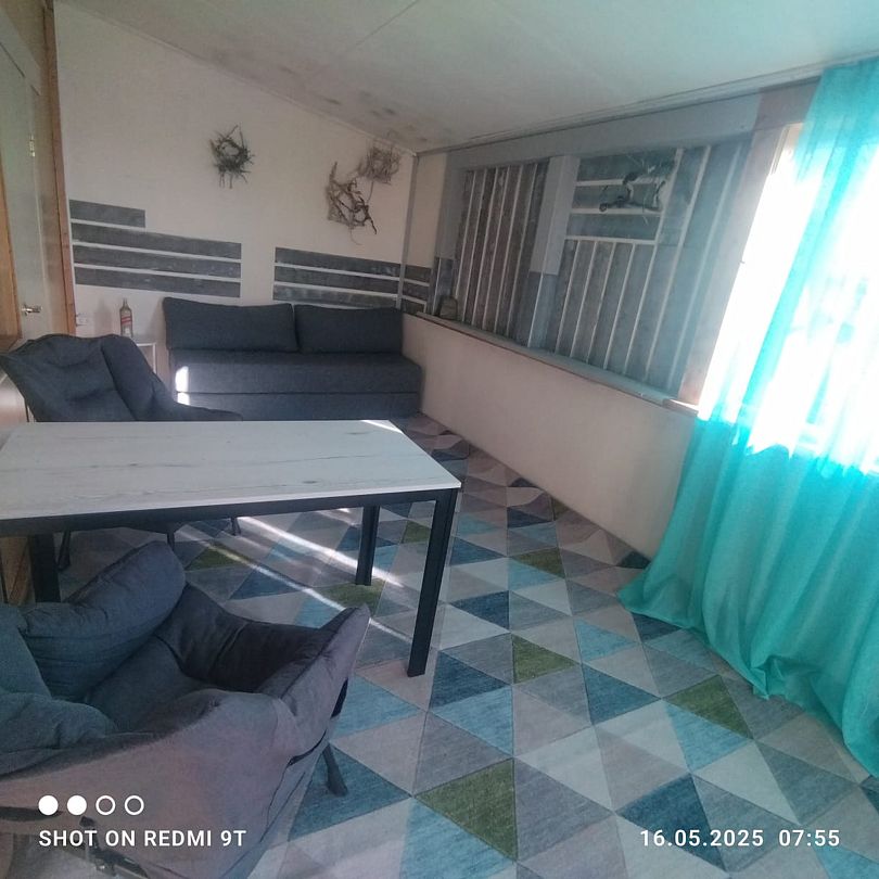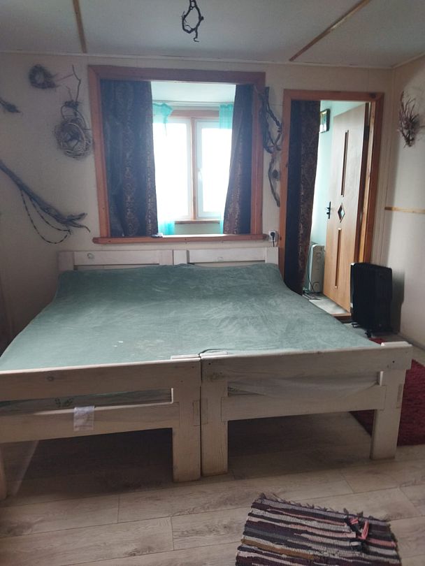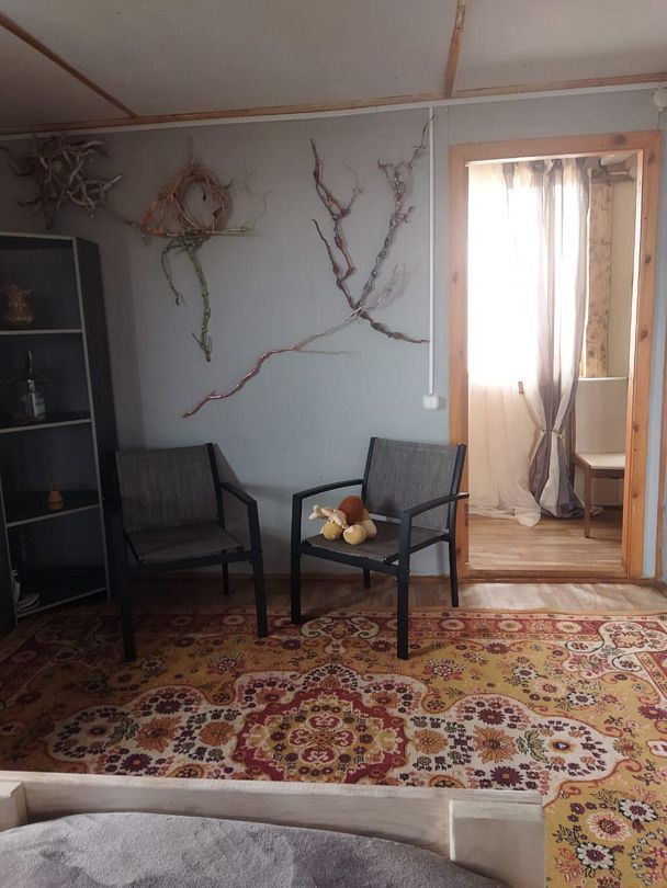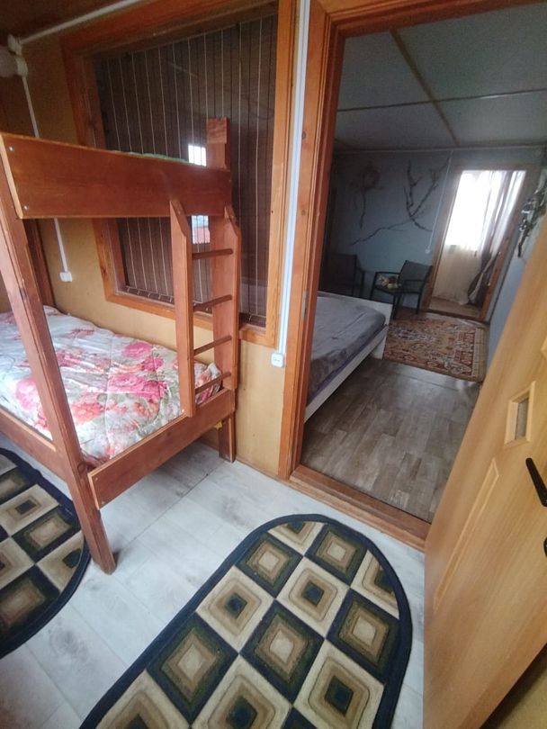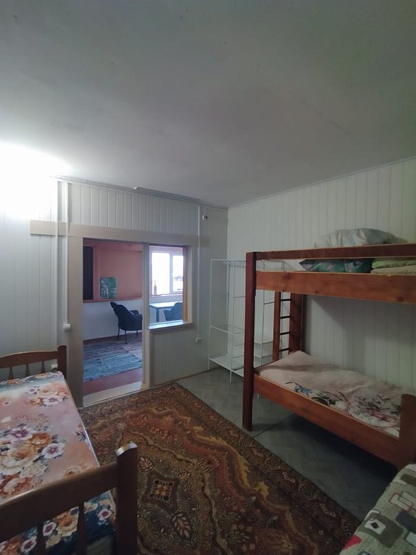 Номер на 1 м этаже из трёх комнат, 2 изолированные по 3 односпальных кровати в каждой, 1 проходная - с 2 диван-кроватями. Вместимость до 10 человек. Санузел, душ, кухня на территории