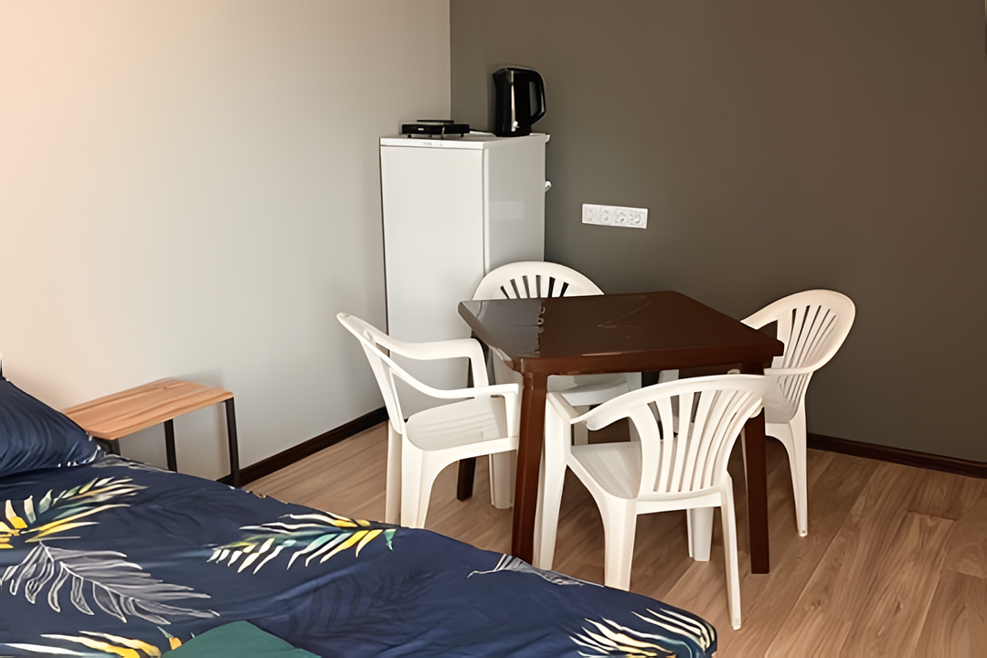 Уютные домики на базе — идеальное место для тех, кто ценит комфорт и спокойствие. Просторные номера с современными удобствами, оборудованные всем необходимым для комфортного проживания и приготовления пищи, позволяют расслабиться после активного дня на свежем воздухе. С террасы открывается завораживающий вид на озеро, а вечерний закат станет прекрасным завершением дня.