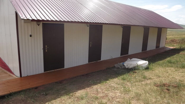 В каждом корпусе в отдельном помещении располагаются две душевые с пресной водой (подогреваются бойлером).