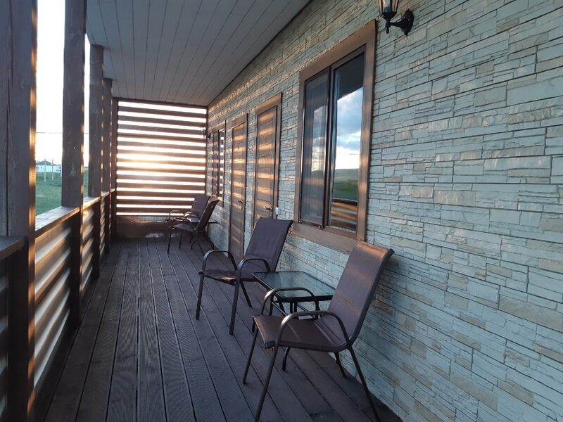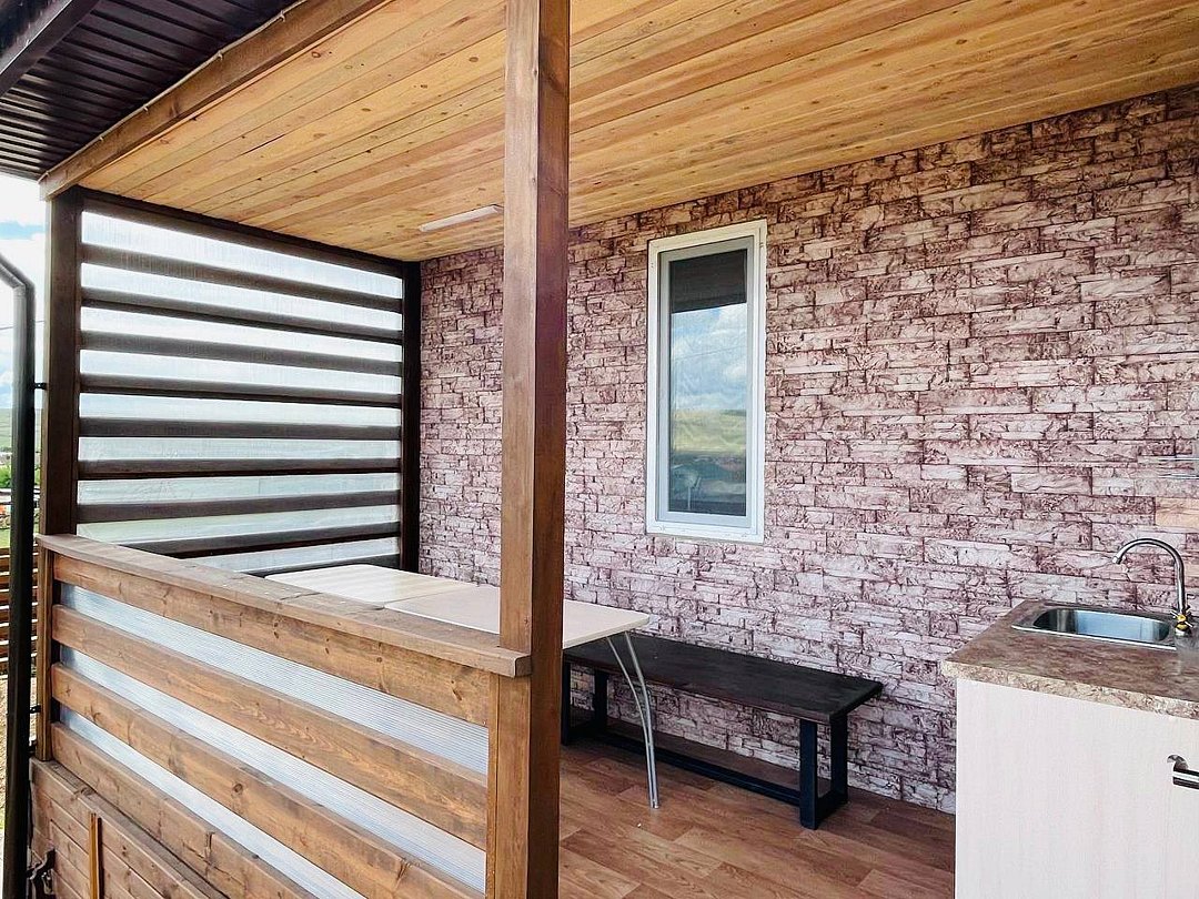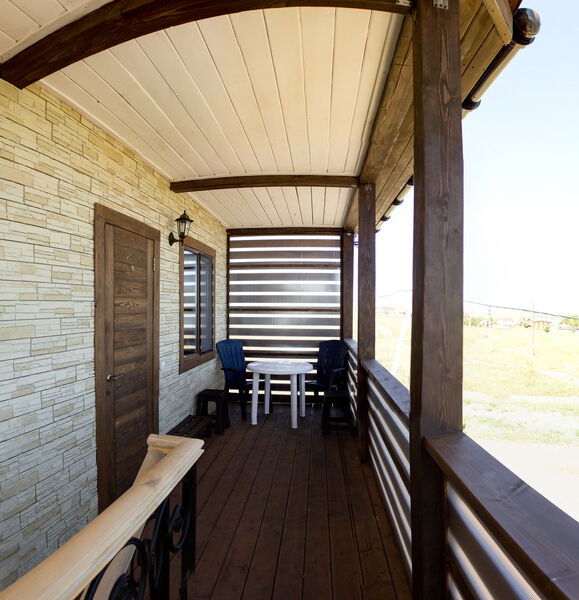 Номер имеет свою террасу, площадку для отдыха, мангальную зону. Отдельный вход с большого крытого крыльца.