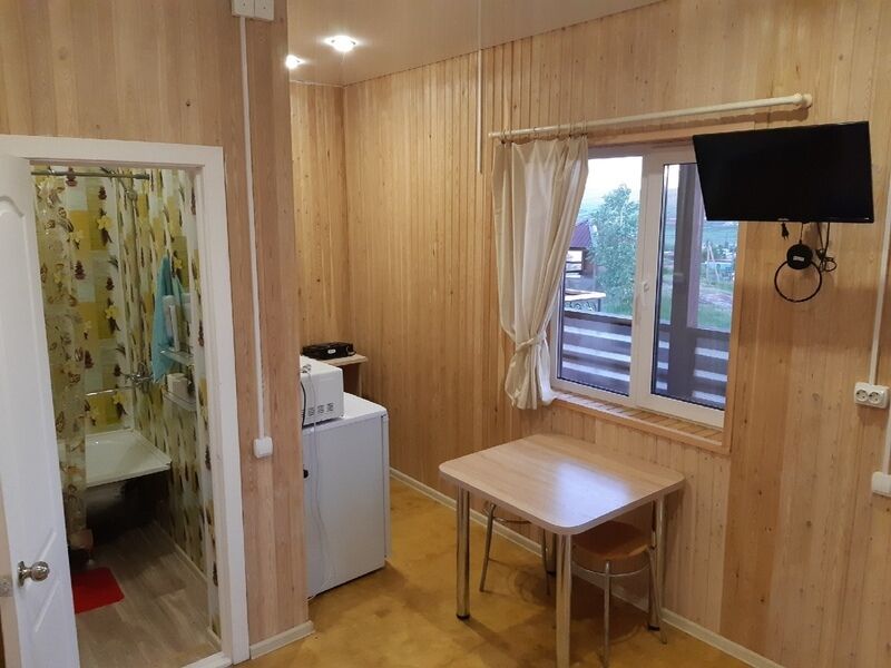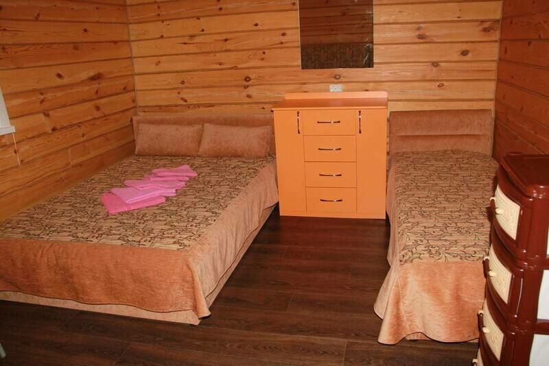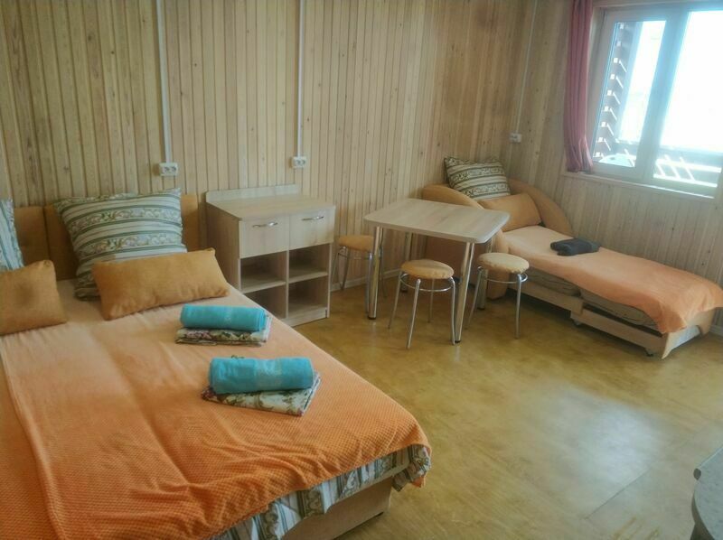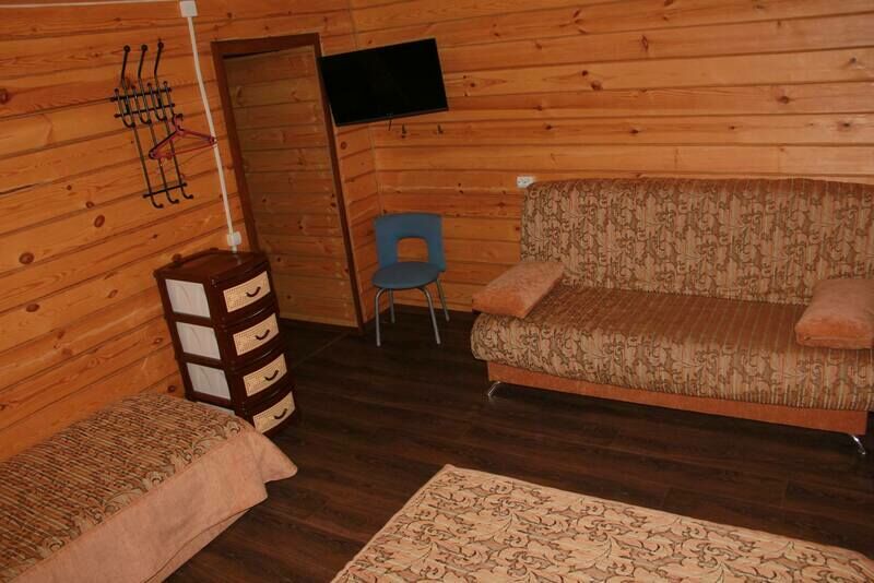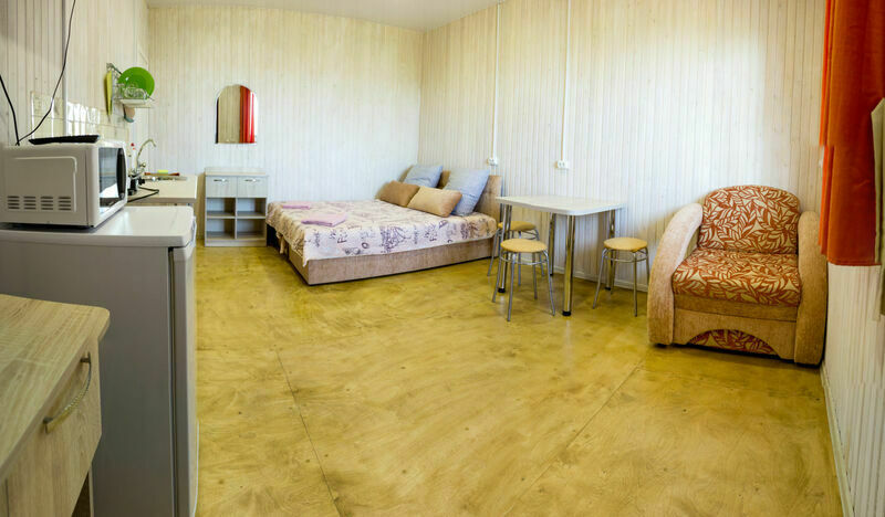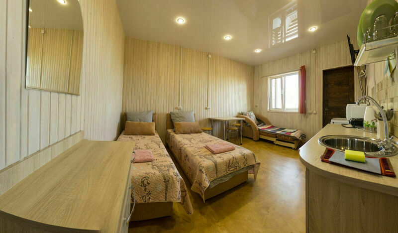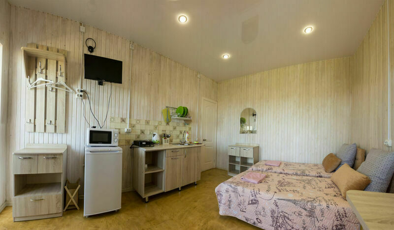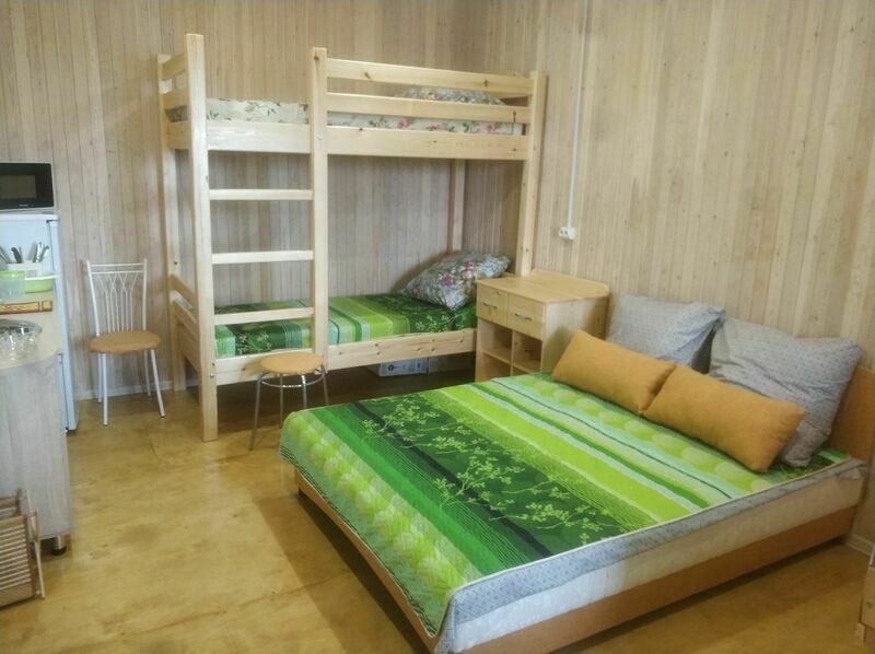 В номерах на 2-3 человека — две односпальных кровати (комфортно сдвигаются в одну) и раскладное кресло. В номерах на 3-4 человека — двуспальная кровать и добротная двухъярусная. Комоды из натурального дерева, тумбочки, обувницы, телевизор, обеденная зона, кухонный гарнитур, холодильник, плита, СВЧ, посуда для приготовления и сервировки, кухонная утварь.
