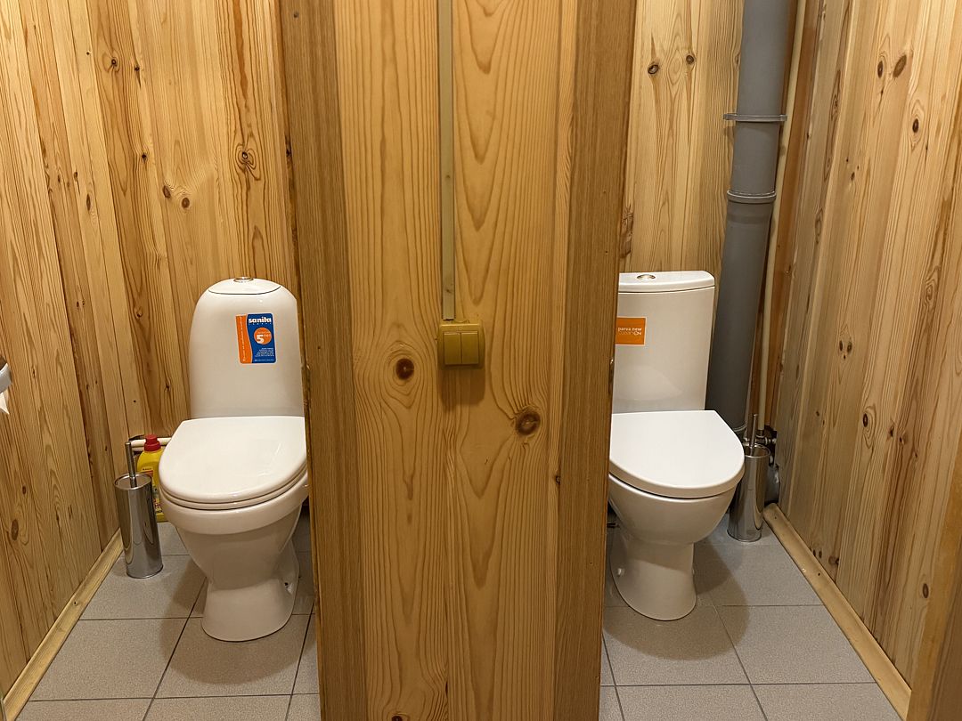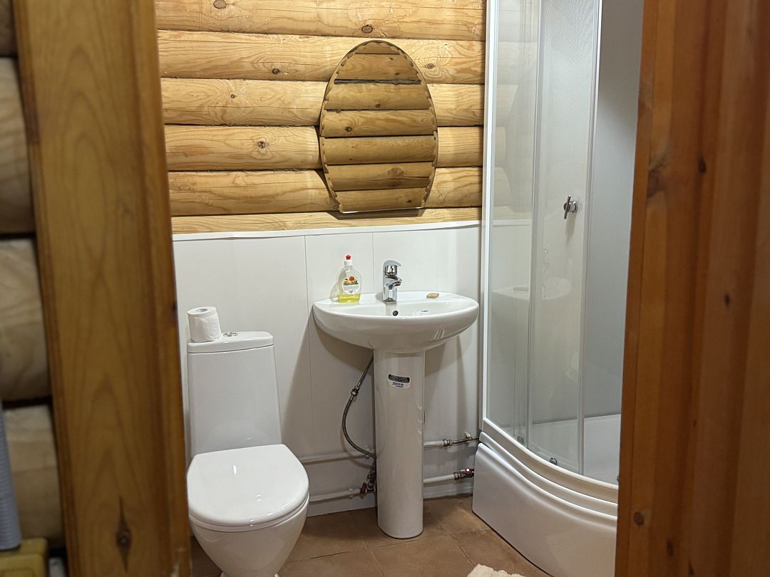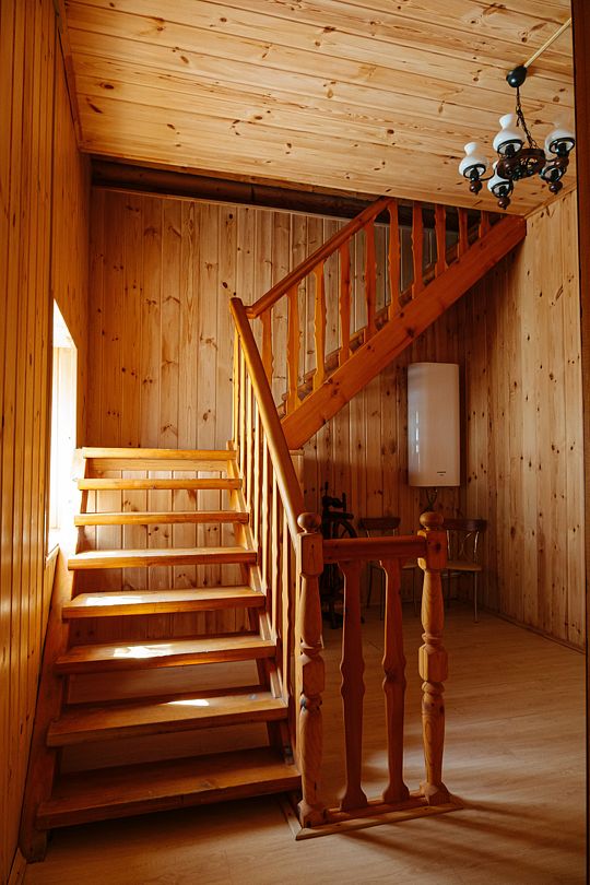 На втором этаже находится уютный холл с зоной отдыха и выходом на балкон, откуда открываются живописные виды на территорию базы и окружающую природу. Здесь же расположены и четыре комфортабельные спальни, каждая с двуспальной кроватью, телевизором, прикроватными тумбочками и вешалками. Второй этаж также оснащен ванной комнатой с душевой кабиной и санузлом.
