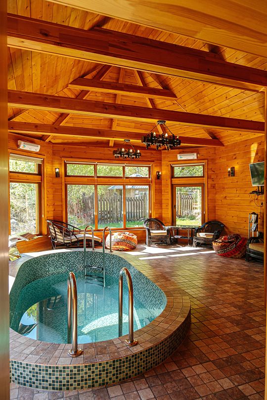Баня в лучших традициях — с парилкой, прохладным бассейном и зоной отдыха. После насыщенного дня на горнолыжных трассах, прогулках, экскурсиях и спортивных состязаниях банные процедуры — то, что нужно.