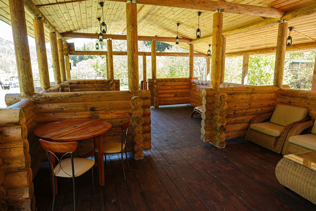 Особой гордостью базы является традиционная русская баня с парилкой, освежающим бассейном и зоной отдыха — идеальное место для восстановления сил после активного дня на горнолыжных склонах или экскурсий. На территории расположены две беседки: русская, идеально подходящая для барбекю, и китайская, созданная для проведения деловых встреч и торжественных мероприятий.