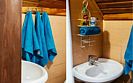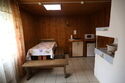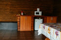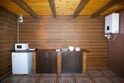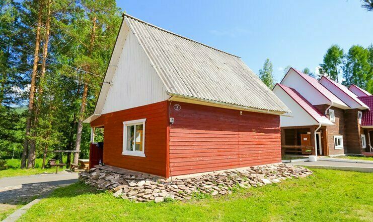 Две двуспальные кровати, две двухъярусные кровати, кухонная зона, с/у с душем. Смежный двумя стенами между домами №4 и №5.