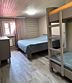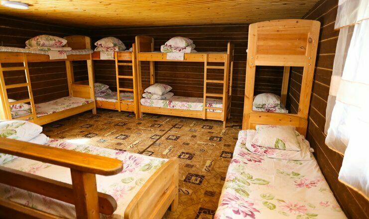 Пять двухъярусных кроватей, две полутороспальные кровати, кухонная зона, с/у с душем