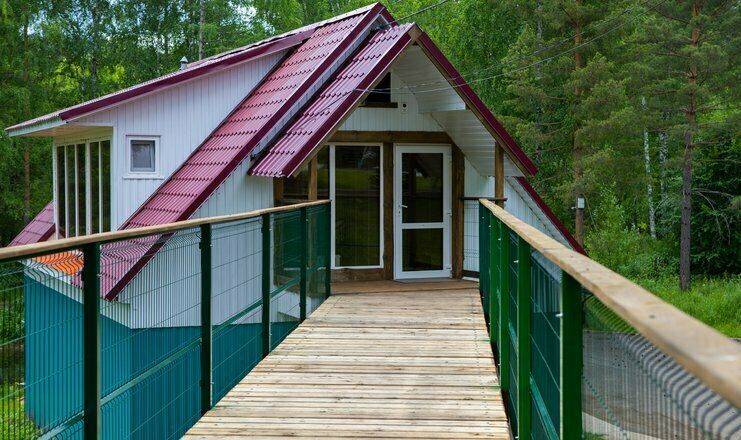 Две двуспальные кровати, полутороспальная кровать, 2 спальных места на 2 ярусе, кухонная зона, с/у с душем. Смежный одной стеной с домом №45)