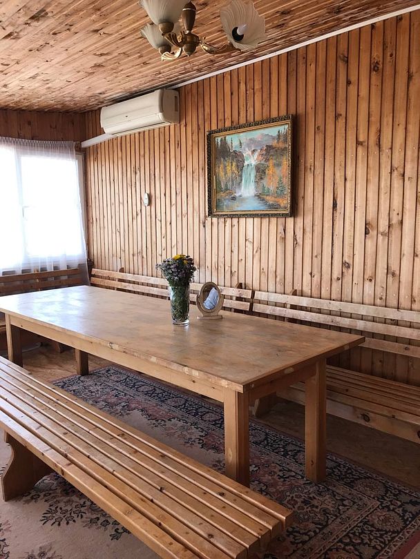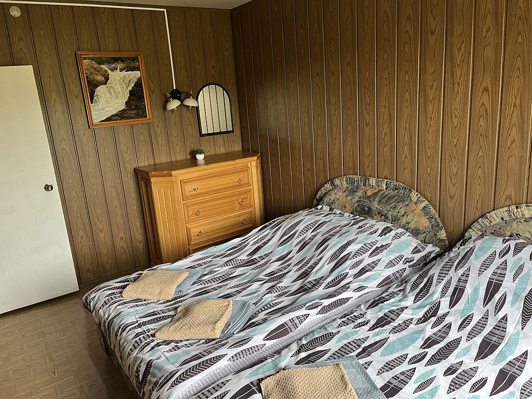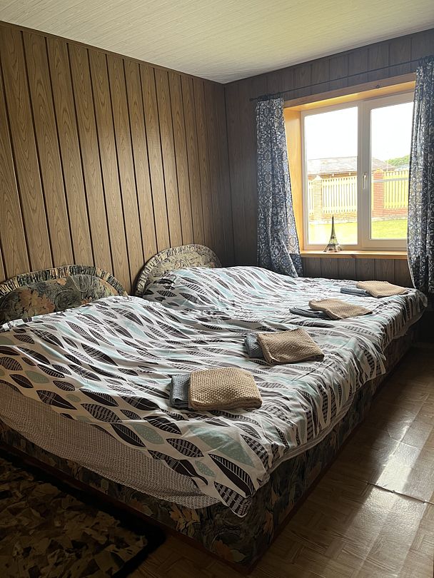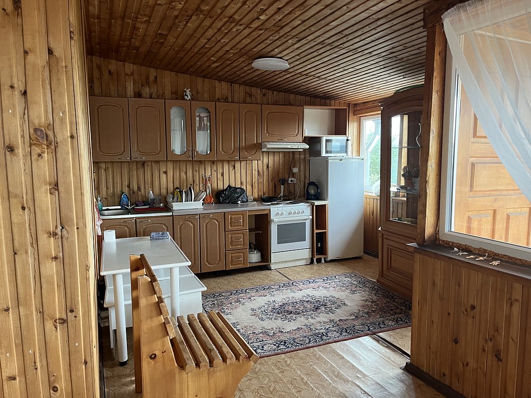 Дом состоит из двух этажей. На втором этаже расположены 5 чистых и опрятных спален с 8 кроватями. Имеется полноценная кухня с большим обеденным столом. Здесь же расположен 1 туалет и 1 душ. На первом этаже находится сауна с душем и туалет.