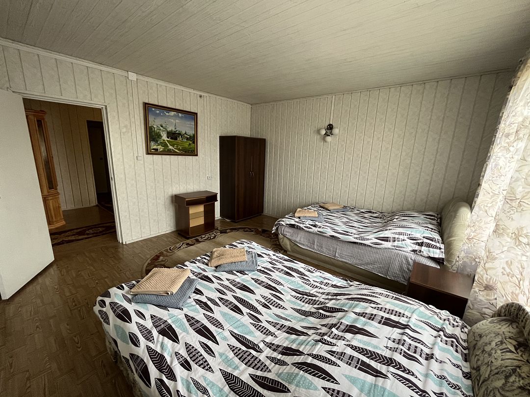 В номере 1 находятся две двухспальные кровати, две тумбочки, шкаф для одежды.