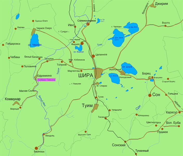 Турбаза «Томичка» располагается в живописном месте недалеко от берега реки Белый Июс и озера Шира за деревней Ефремкино.
