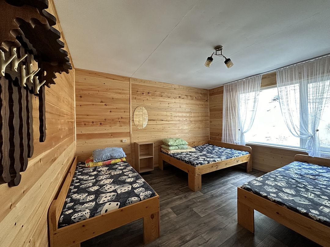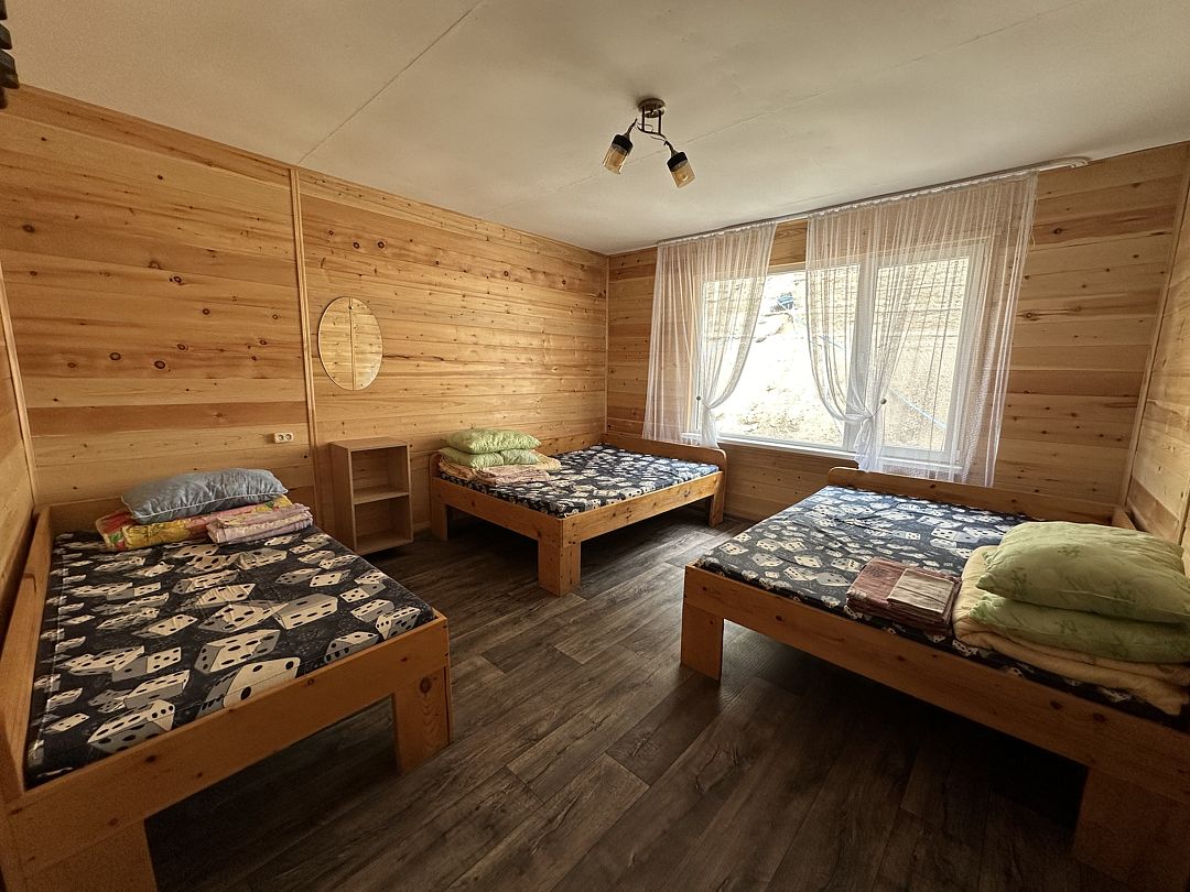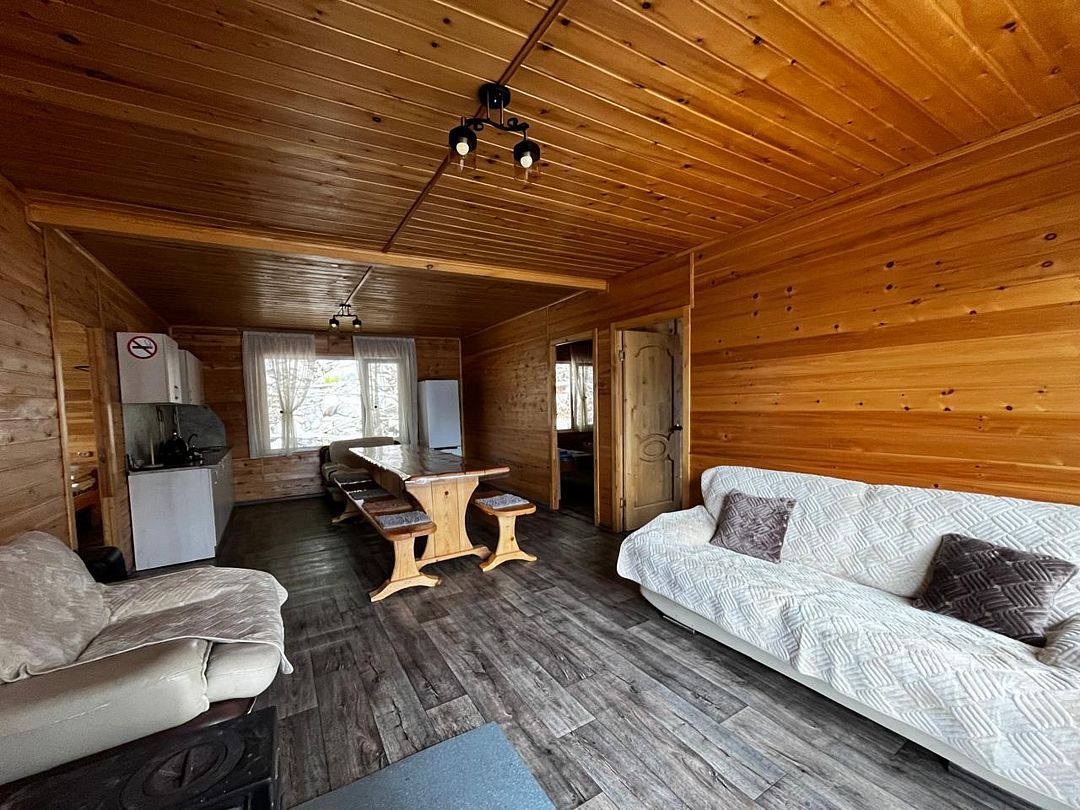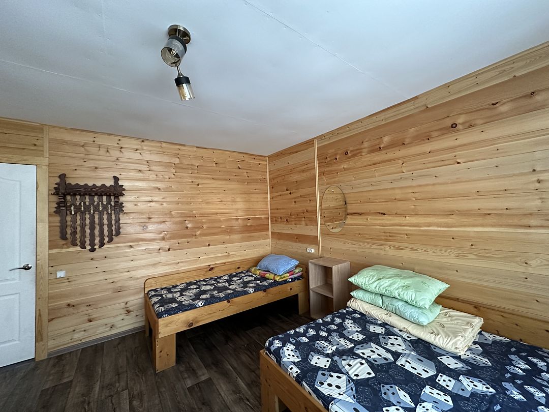НедостаткиТруднодоступность к лесной территории, мебель, двери и предметы интерьера грязные, солярки для генератора предоставляется 5 л, уверяя, что должно хватить на 2 суток, которых не хватило бы и на сутки, экономили, ночью не включали свет. Утром, переночевав одну ночь, позвонили, чтобы устранили недостатки, но телефон не брали, дозвонились только после обеда, после чего пообещали привезти солярку и колонку, но это случилось тоже спустя 3 часа, но мы уже приняли решение, что оставаться здесь не будем, т. к. считаем, что это не уважение к гостям, при чём за не малые деньги. Пробыв сутки на этой базе-мы её покинули, не доплачивая, т. к. заявленного сервиса мы не обнаружили. После всего выше изложенного отдых был испорчен, возможно другие дома по новее и комфортней, но на 8 человек это ужас-никому не посоветую ехать в этот дом.
