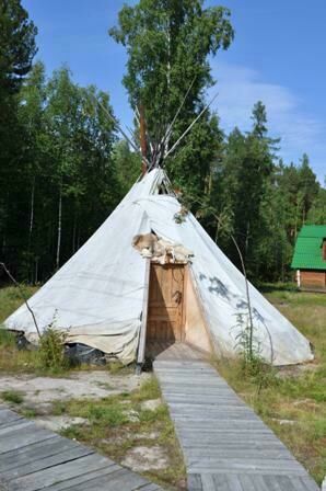 В чуме есть кровати, низкие столики, печь, оленьи шкуры на полу. В чуме прохладно и свежо летом и тепло зимой благодаря современным технологиям.