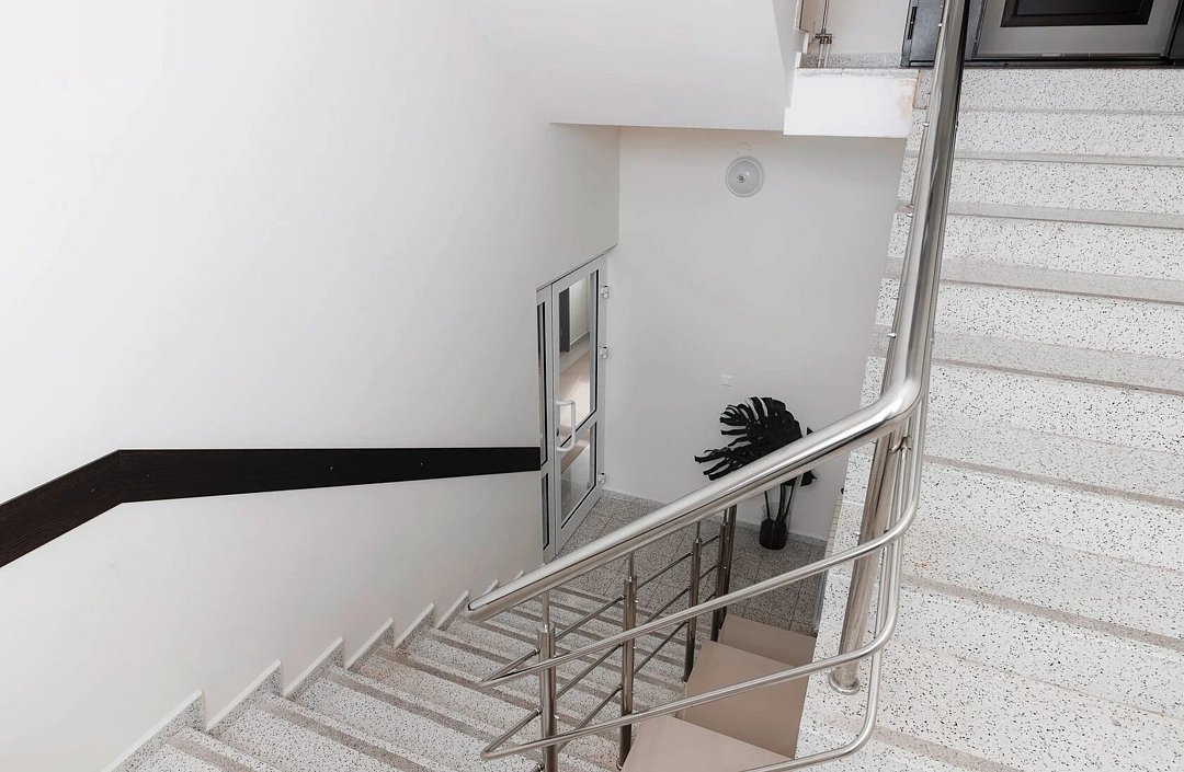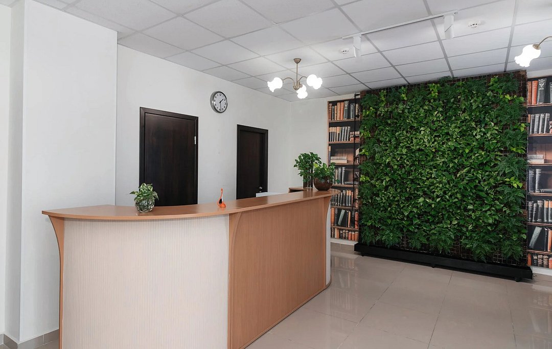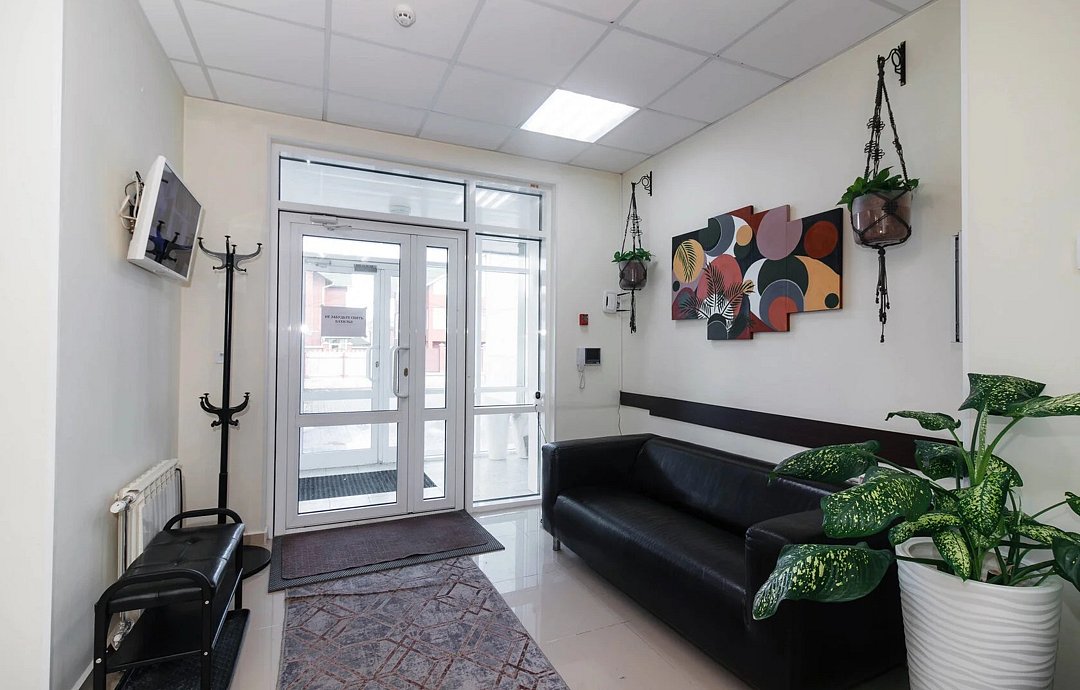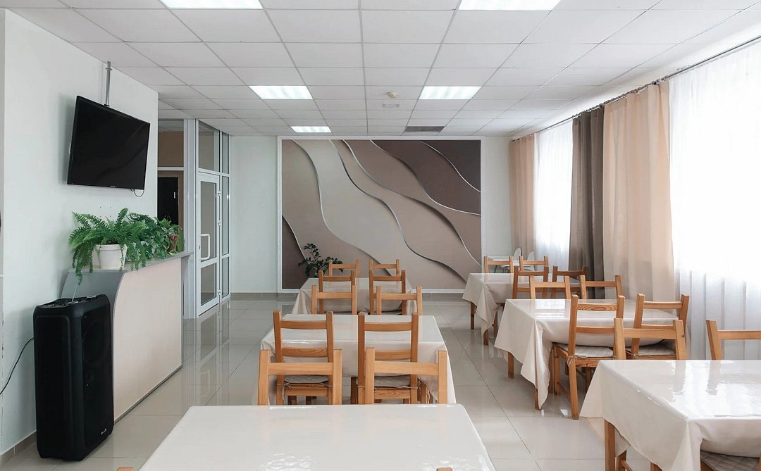На первом этаже организована украшенная живой зеленью лаундж-зона со столиками. Оборудована столовая, где желающие могут заказать завтрак. На территории предусмотрена закрытая автостоянка на 8 машиномест.