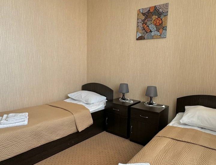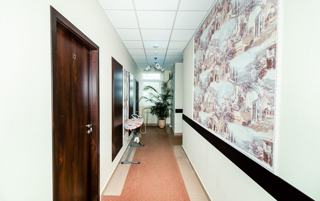 Гостевой дом представляет собой двухэтажное здание с цоколем. Жилой фонд представлен несколькими категориями размещения - от однокомнатных стандартов на одного до двухкомнатного номера на пятерых. Все варианты полностью подготовлены к заезду постояльцев, оснащены удобными спальными местами, рабочей зоной, кабельным ТВ, собственной душевой. Для гостей приготовлены тапочки, комплект полотенец, набор гигиенических принадлежностей. По запросу предоставляется фен. Доступно подключение к wi-fi.