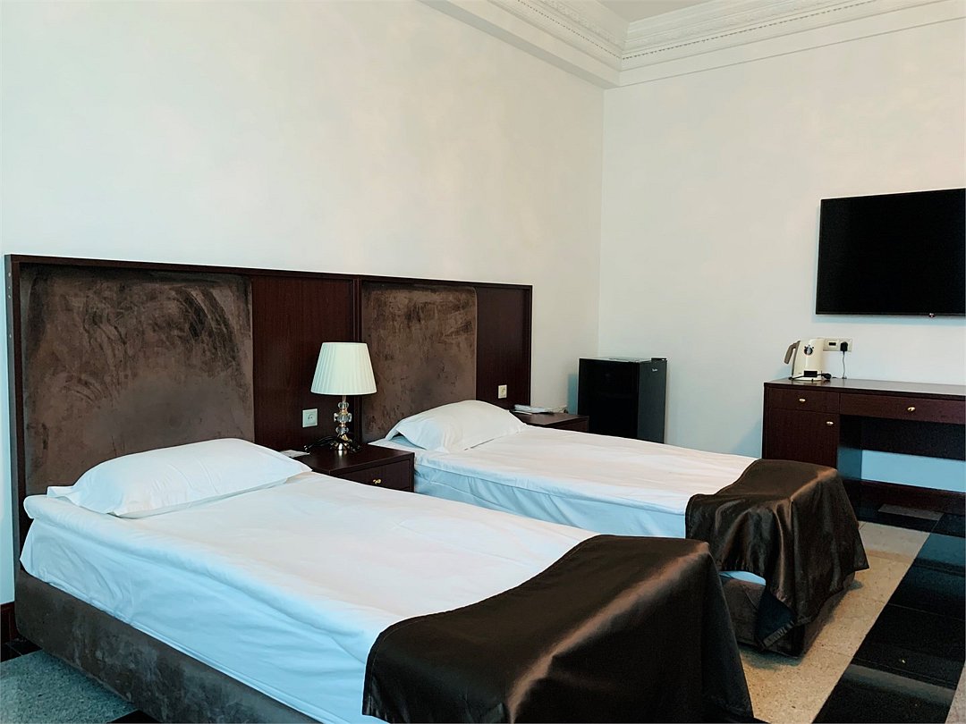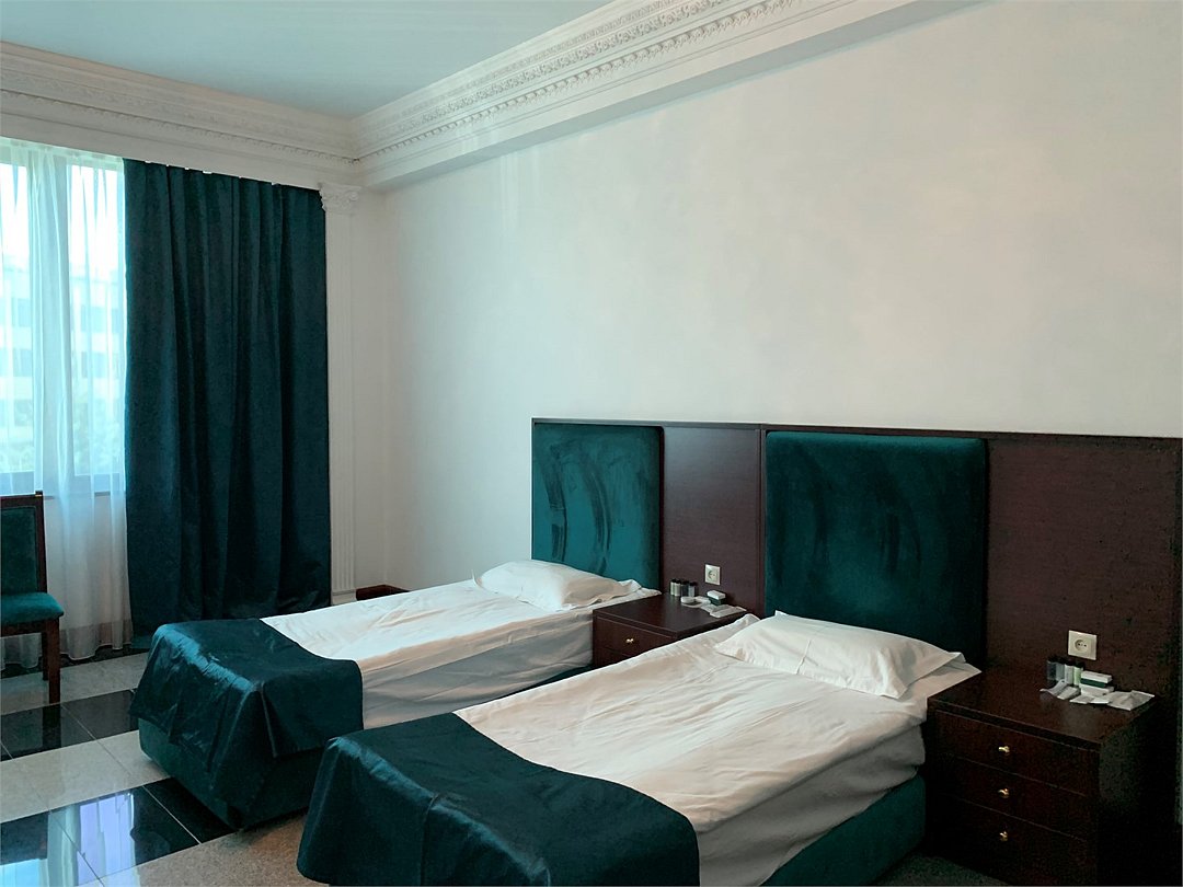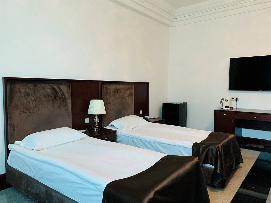 Однокомнатный номер с двумя односпальными кроватями предназначен для комфортного проживания одного или двух человек. Завтрак по системе "Шведский стол" включен в стоимость проживания.Услуги и удобства