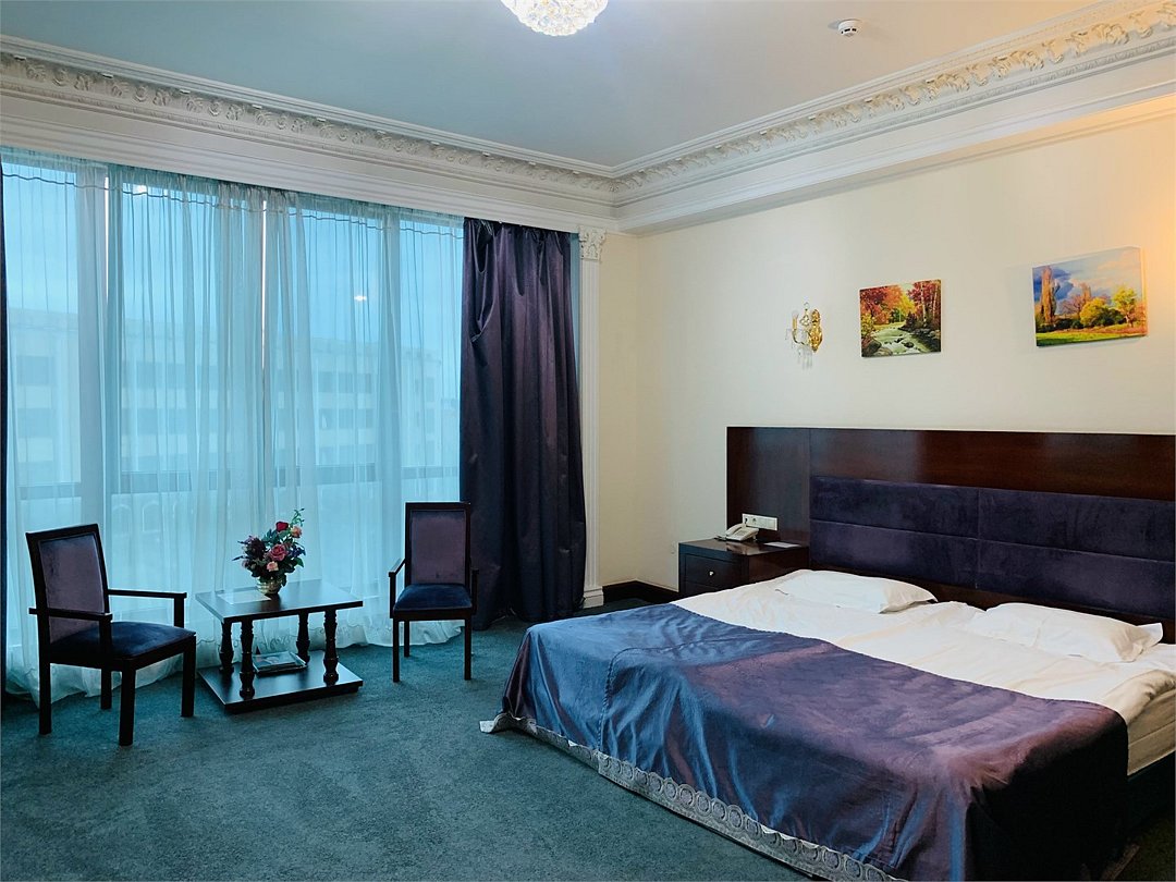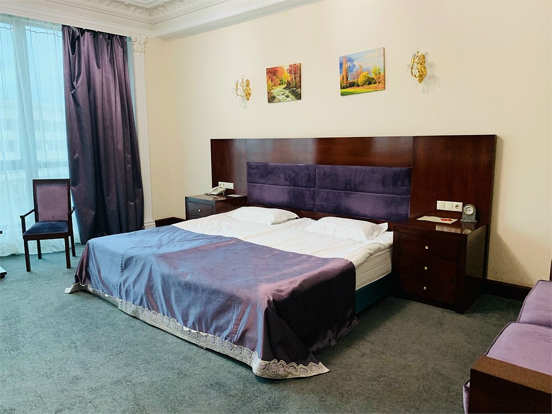 Номер повышенной комфортности с одной двухспальной кроватью предназначен для ко одного или двух человек. Завтрак по системе "Шведский стол" включен в стоимость проживания.Услуги и удобства