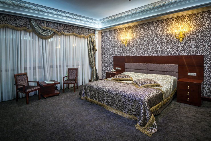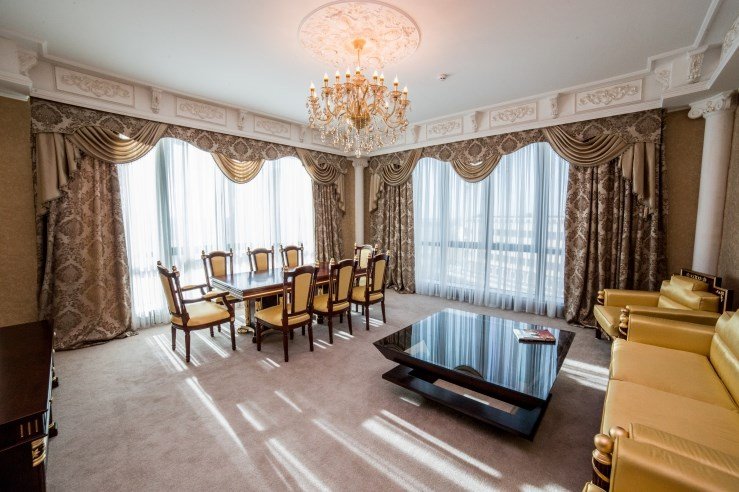 спутниковое телевидение, кабельное телевидение, Wi-Fi, кондиционер, светильник, настольные лампы, фен, электронные замки, биде, банные принадлежности, халаты, банные полотенца, тапочки, косметические средства, двуспальная кровать, диван, тумбы, стулья, обеденный стол, зеркало, информационная карта, меню, сейф, раковина, питьевая вода, ковровое покрытие, душ, вид на город, вид во двор, высокие потолки, стол, туалетный столик, туалетные средства, туалет, цифровое тв, внутренний телефон, телевизор с плоским экраном, мини-холодильник, шкаф-купе, гигиенический душ, чайная станцияВ гостиничном номере