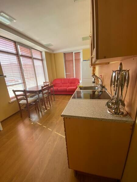 Номер состоит из спальни с двухспальной кроватью, гостиная - кухня,