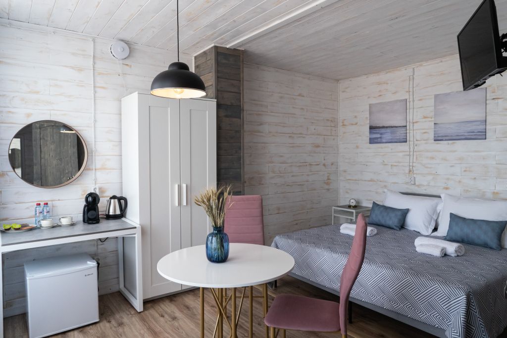 Стандартный номер отеля это максимально уютное пространство площадью 15 квадратных метров с видом на сосновый лес. Комплектация номера: 2 раздельные кровати или одна кровать "King Size", телевизор, зона для чаепития, изящная чайная пара, чайник и ароматный чай, холодильник, удобные стулья, вместительный комод, тумбочка, зеркало, туалет и ванная комната с различными приятными мелочами по уходу за собой, включая такой важный инструмент для создания образа, как фен. Кстати, красиво сервированный вкусный завтрак от нашего шеф-повара входит в стоимость номера!Услуги и удобства