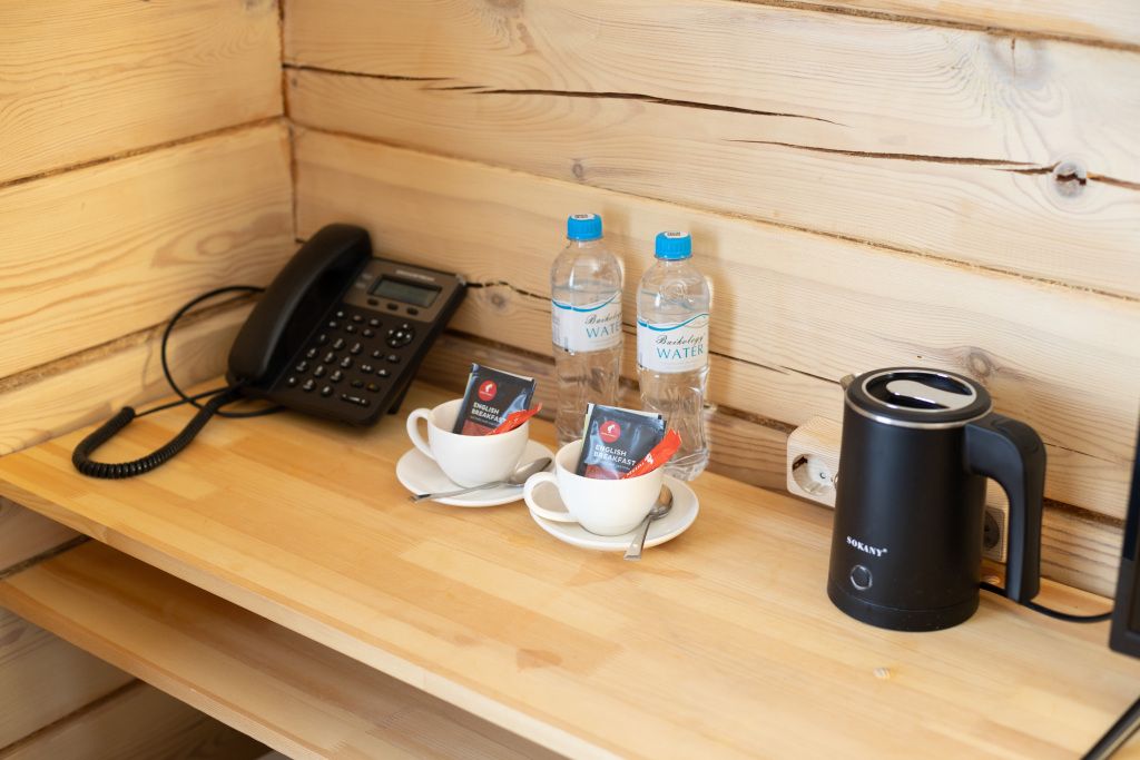 Wi-Fi, настольные лампы, фен, ванная комната, душевая кабина, водонагреватель, банные полотенца, тапочки, кровать «King size», две односпальные кровати, стулья, гардеробная, вешалки, зеркало, комод, чайный набор, обслуживание номеров, сейф, чайник, питьевая вода, ковровое покрытие, отопление, стаканы, туалетные средства, туалет, цифровое тв, мини-холодильник, гостиничная парфюмерия, вид на лесВ гостиничном номере
