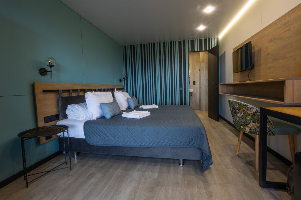 Арт-номер - это стильное и комфортное пространство с большим панорамным окном и террасой с видом на лес и во внутренний двор отеля. Элегантная мебель из натурального дерева, красивый интерьер , звукоизоляция и продуманные детали для приятного пребывания на отдыхе.Услуги и удобства