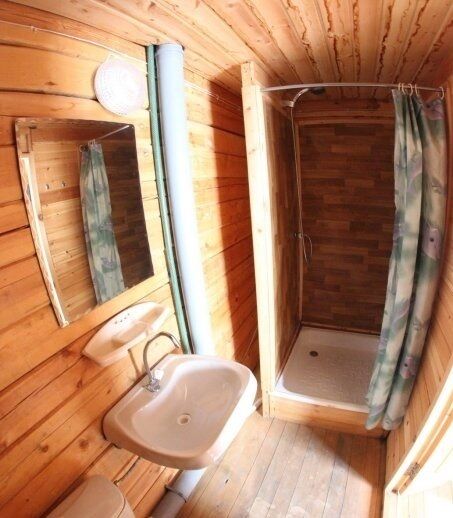 В номере: общая веранда для двух номеров, 4 кровати, стол, стулья, санузел с душем. Душ в номерах летний (нагрев воды от солнца). Душ с горячей водой на территории (бесплатно).