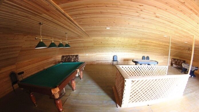 Большой зал кафе вмещает около 100 человек, поэтому вы можете арендовать зал для празднований различных мероприятий. Для тех же, кто просто хочет уютно посидеть в небольшой компании, на территории есть беседки с барбекю. Также скоротать вечер можно в бильярдной за интересной игрой.