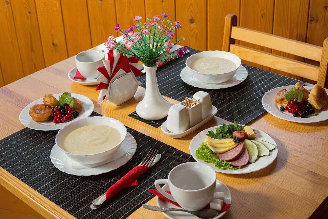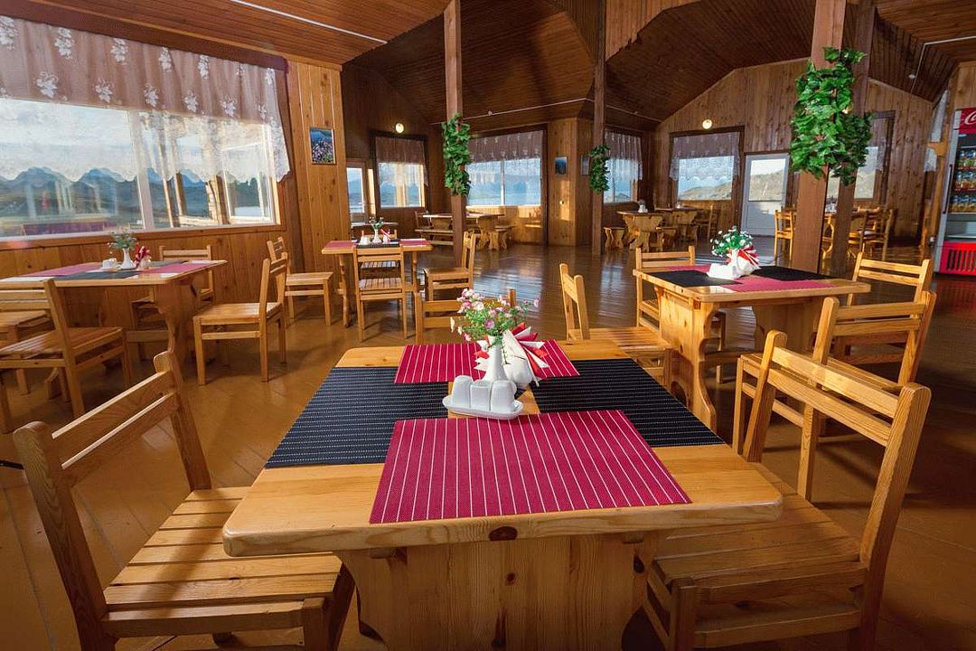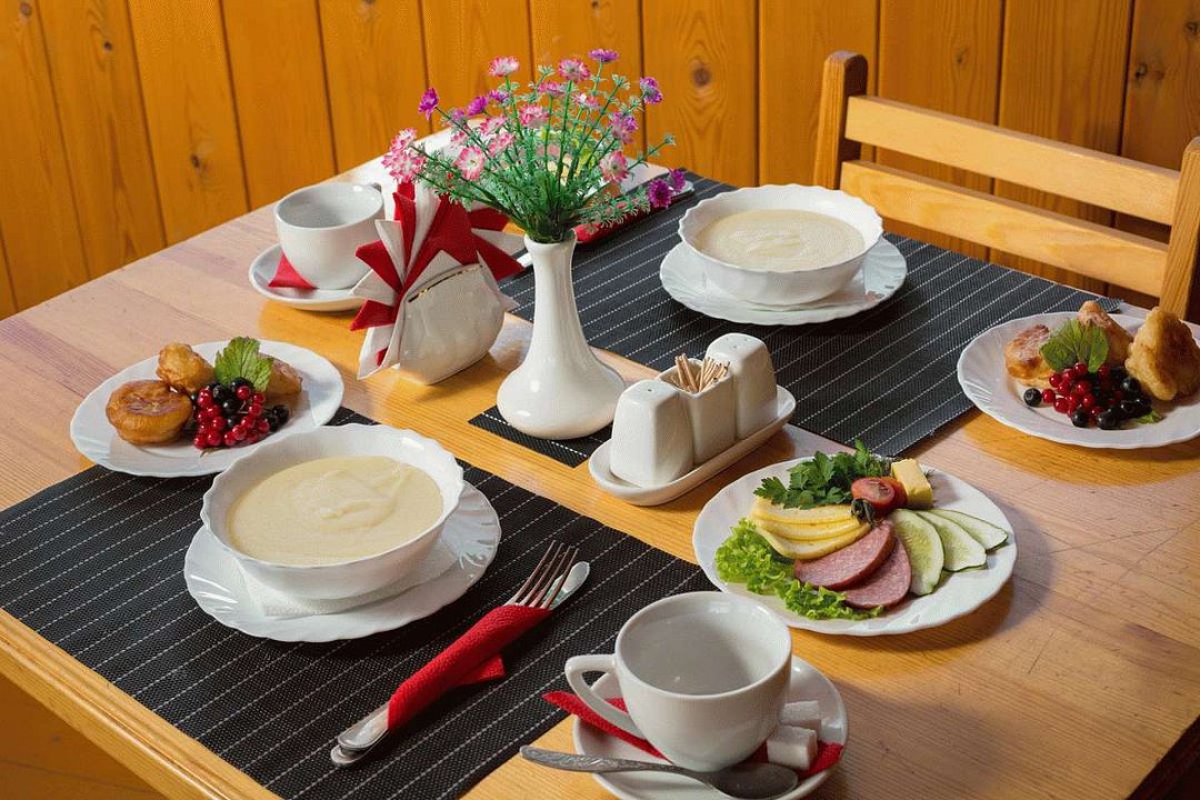 В уютном кафе базы отдыха «Байкальская радуга» посетителей встречает изысканная кухня, сочетающая домашние рецепты с традиционными бурятскими блюдами. Здесь предлагается трехразовое комплексное питание, а в пиковые сезоны завтрак включен в стоимость проживания, создавая атмосферу домашнего уюта и комфорта.