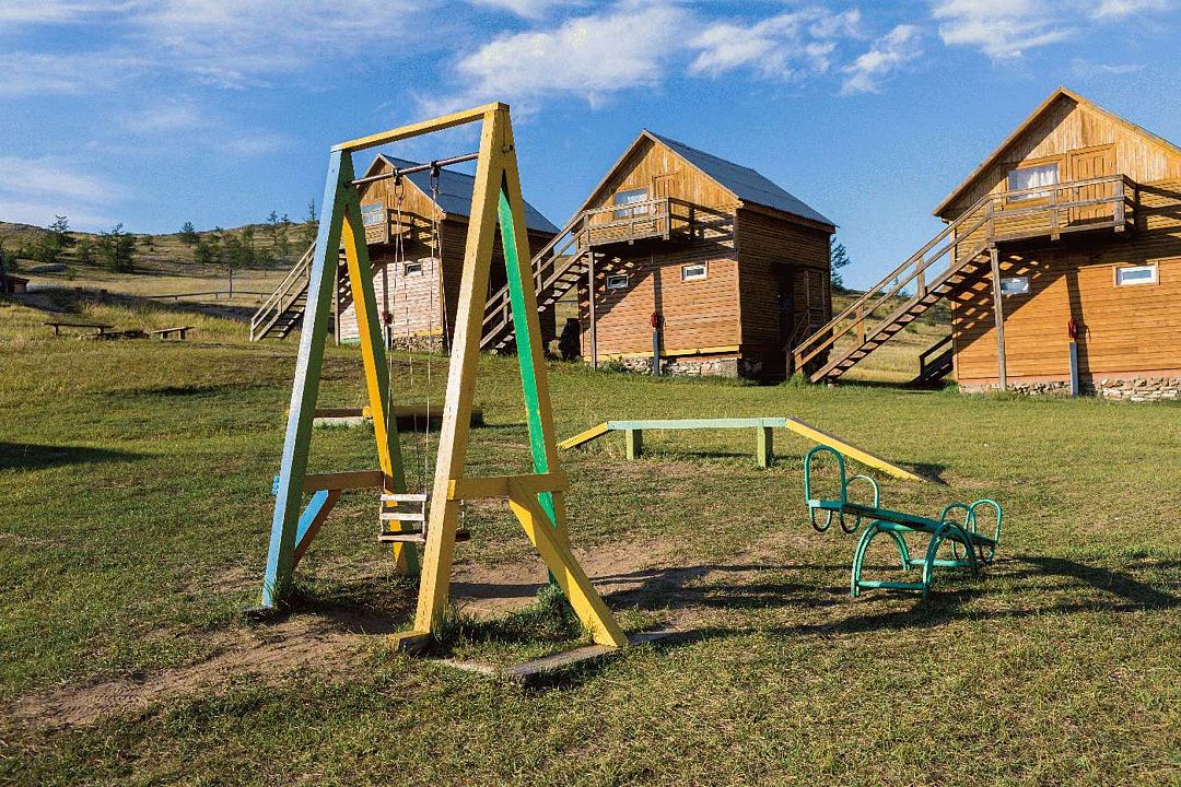 Недалеко от домиков находится уютная детская игровая площадка, где юные отдыхающие могут весело и безопасно проводить время под присмотром родителей.