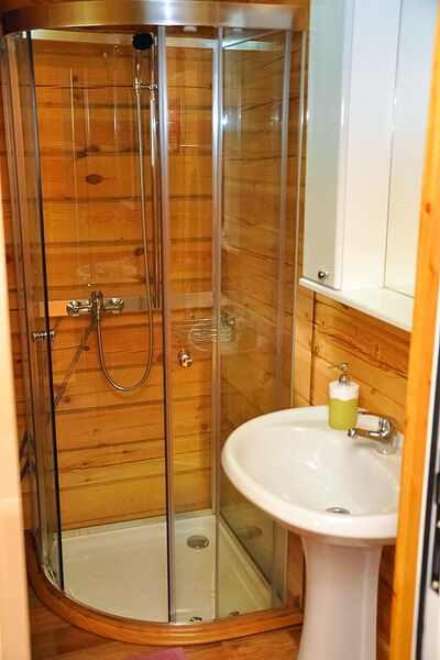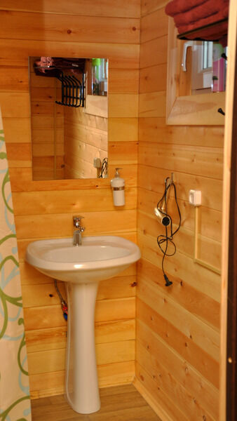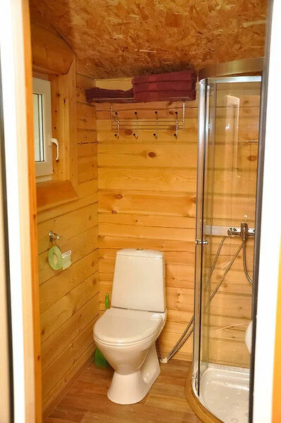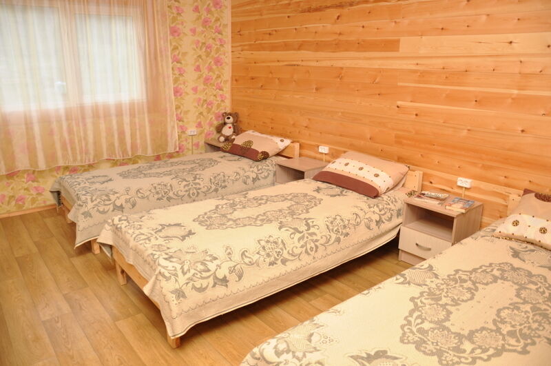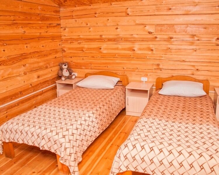 Номер категории «Комфорт» — это отдельно стоящий дом в лесной зоне, изготовленный по технологии профилированного бруса из Ангарской сосны, с двуспальными или односпальными кроватями.