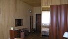 В номере: двуспальная кровать, 2 прикроватные тумбы, 2 настольные лампы, плательный шкаф, трюмо, пуф, холодильник, телевизор, санузел (унитаз, раковина, душевая кабина, холодная и горячая вода).