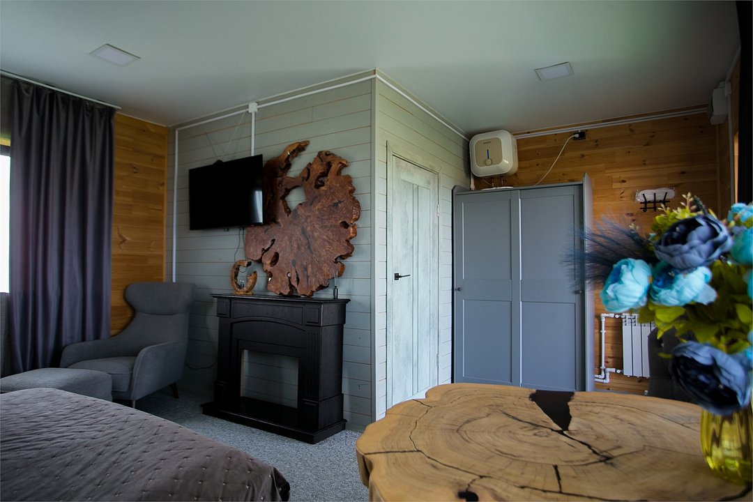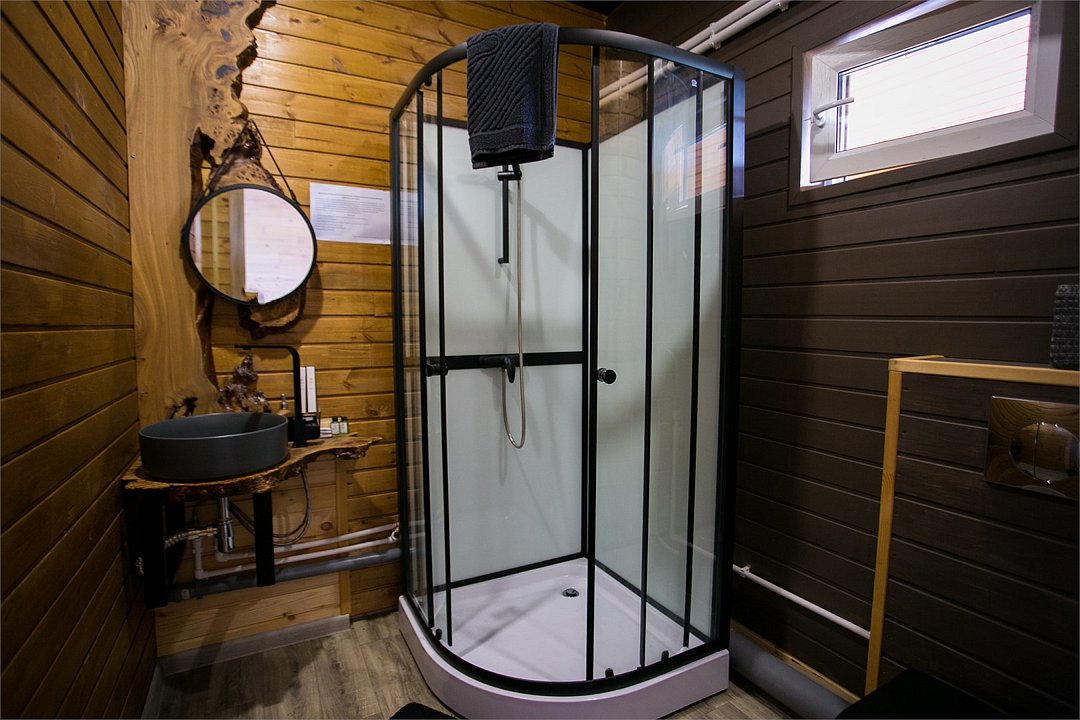 Wi-Fi, холодильник, светильник, фен, обогреватель, душевая кабина, санузел, водонагреватель, теплый пол, халаты, тапочки, терраса, кровать «King size», тумбы, стулья, шкаф для одежды, вешалки, обеденный стол, зеркало, звуконепроницаемые стены и окна, чайник, унитаз, отопление, отдельный вход в номер, душ, вид на сад, кресло, ламинат, стаканы, стол, тумба, мангал, панорамные окна, мини-холодильник, телевизор со Smart TV, теплые полы, туалетные принадлежности премиум-класса, веранда, мыло, затемняющая штора, можно с питомцами, баняВ бунгало