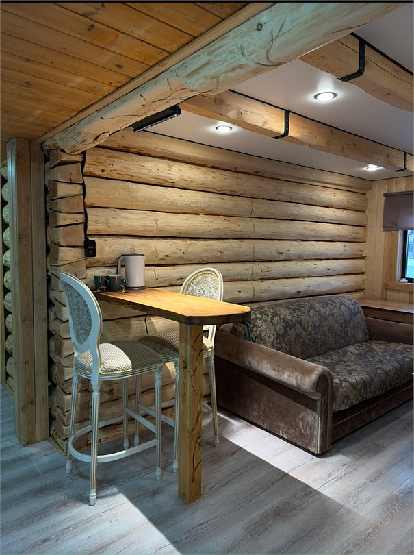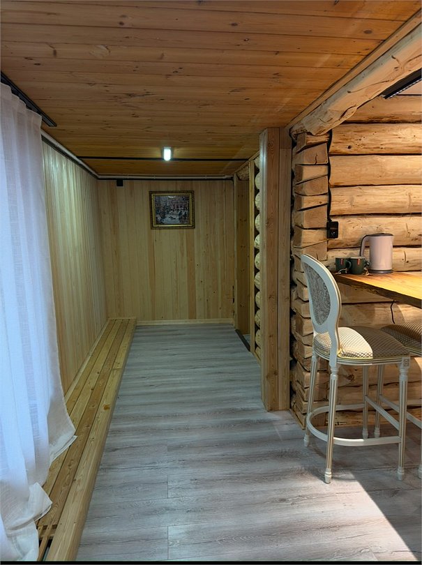 Инфраструктура: тапочки, полотенца, халатыОтделка бани из высококачественных материалов термоабаш и термодуб.