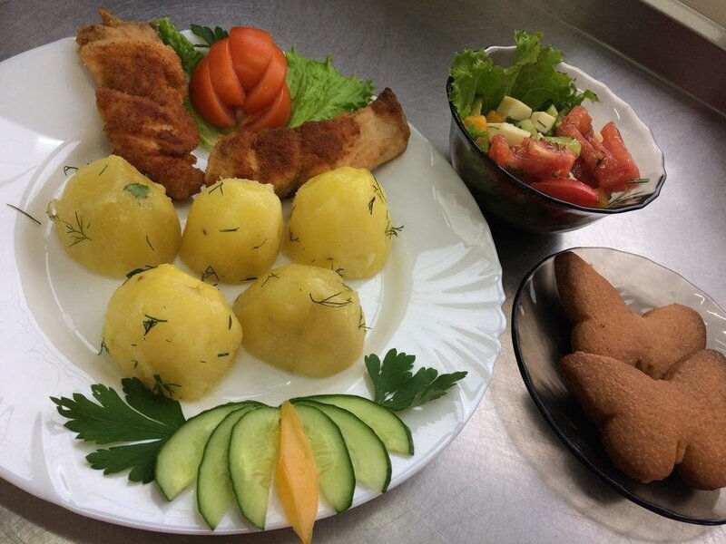 Питание нужно заказывать заранее, но есть варианты с полным пансионом, но рядом магазины и куча кафе, можете питаться сами