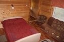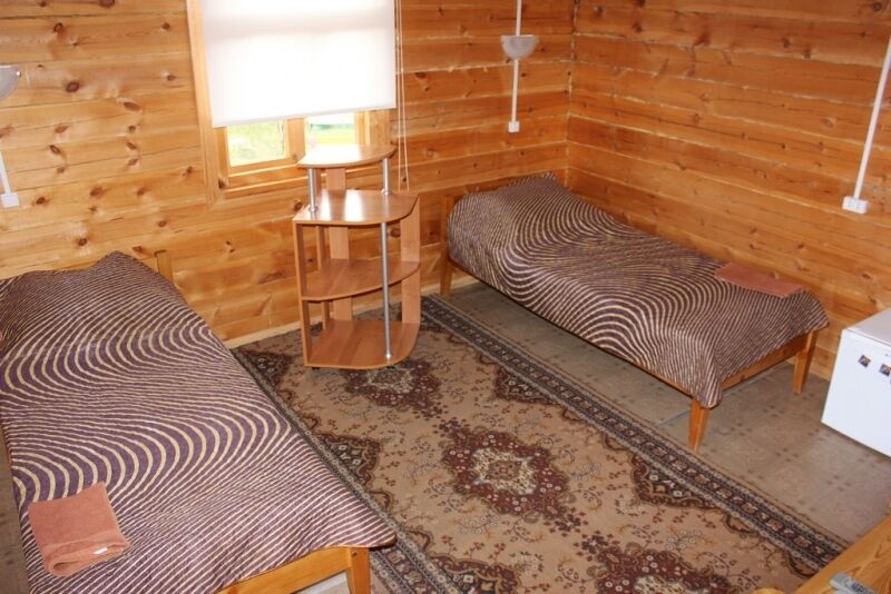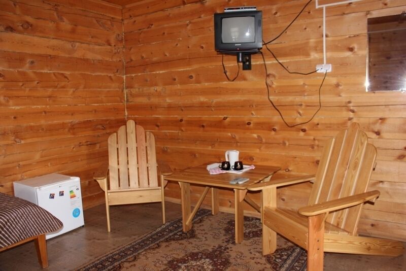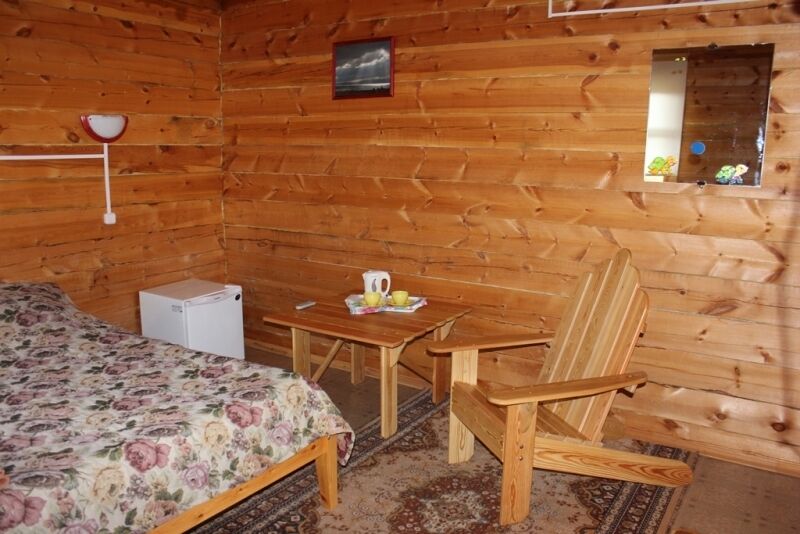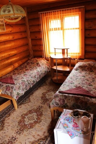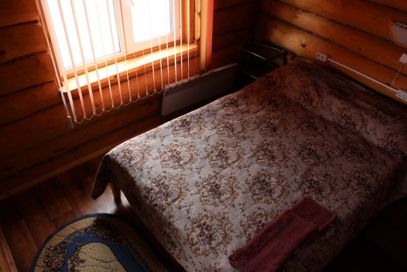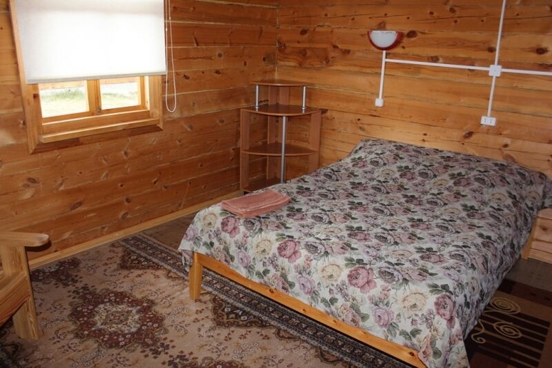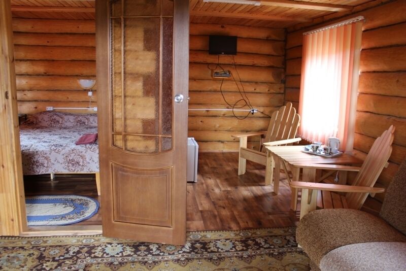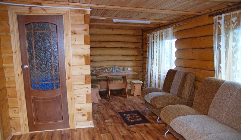 Один благоустроенный домик из кругляка, состоит из отдельной спальной комнаты с семейной кроватью и гостиной с раскладным диваном, для размещения до 4-х человек.
