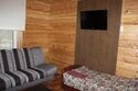 - небольшая гостиная, холодильник, ТВ с большим экраном, чайник, чайная пара