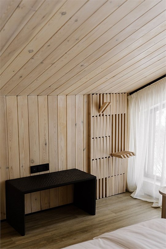 Завтраки входят в стоимость проживания, количество завтраков соответствует количеству оплаченных мест в домике. Заселение в домик происходит с 15:00 до 22:00 Заезд позже 22:00 оговаривается отдельно. Выезд фиксировано в 12:00 Над созданием новых домиков трудилась команда архитекторов, дизайнеров, строителей - каждый внес в процесс свой опыт, видение и душу. Поэтому получилось так многогранно и красиво. В архитектуре домика много отсылок к природности – стены, потолок, похожий на звездное небо; мебель ручной работы из натуральных материалов. Все это в совокупности создает особенную атмосферу места, попадая в которую, хочется остановиться, рассмотреть детали, провести рукой по фактурным поверхностям, подумать о чем-то важном и помечтать.Услуги и удобства